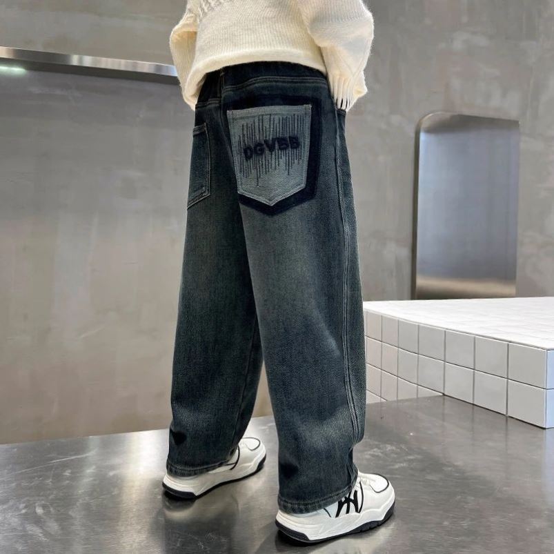 男童裤子儿童春秋牛仔裤2025春新款中大童休闲宽松直筒长裤潮