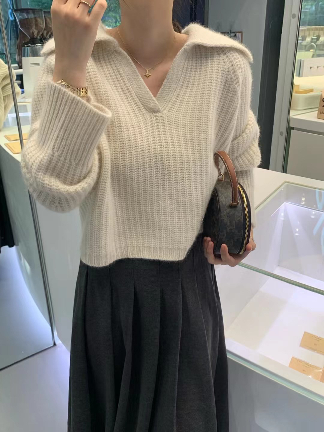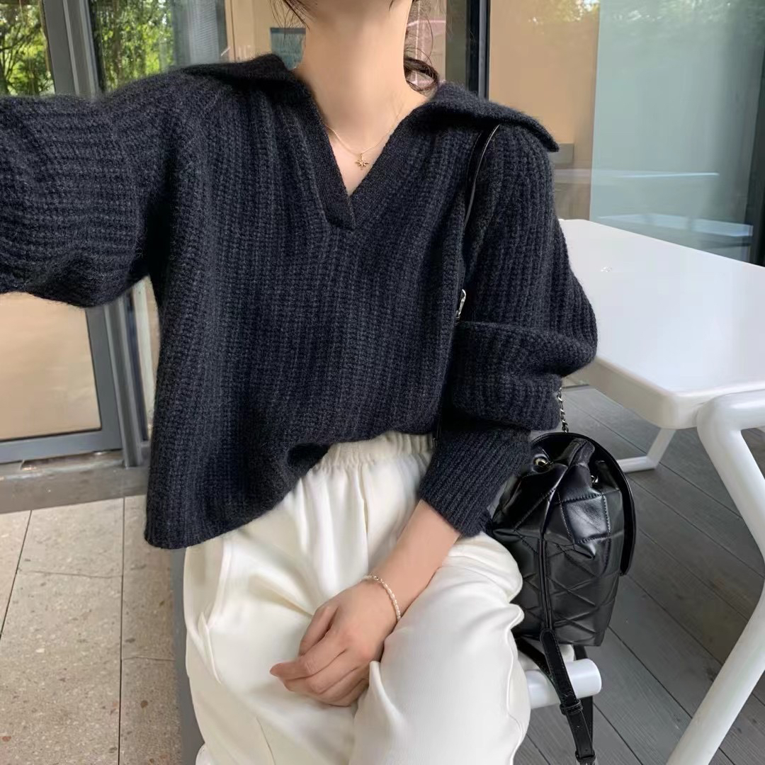 现!韩国东大门正品女装 秋冬季新款 高品质比例v翻领羊绒针织衫