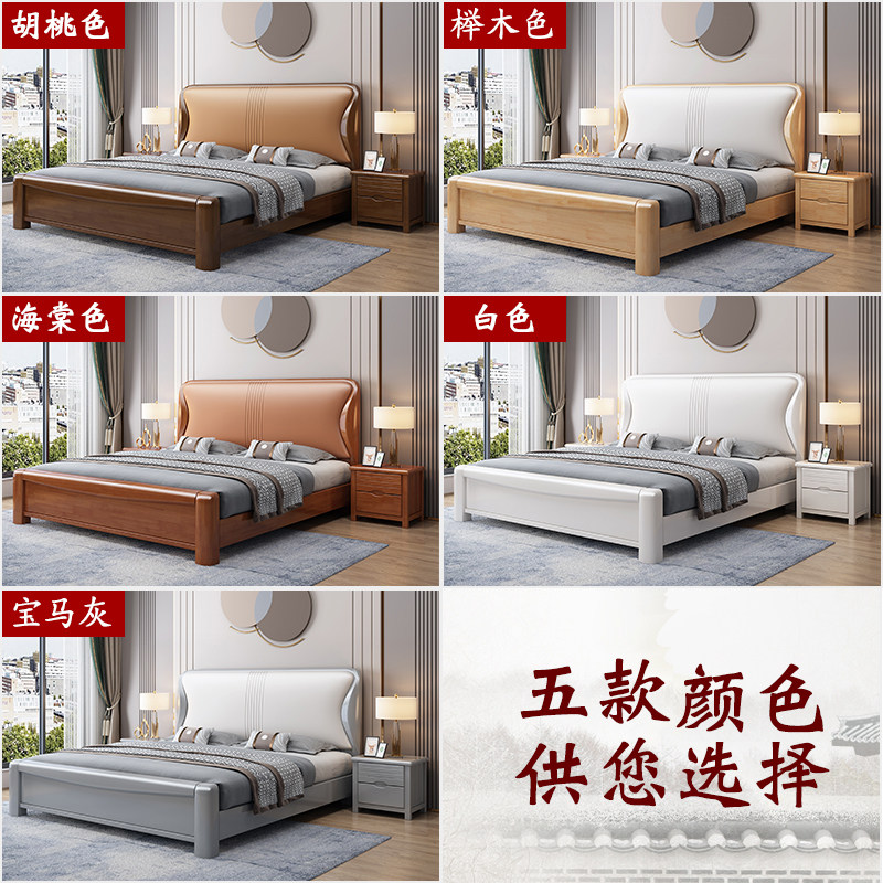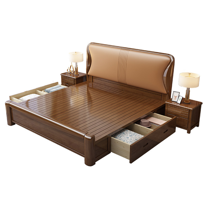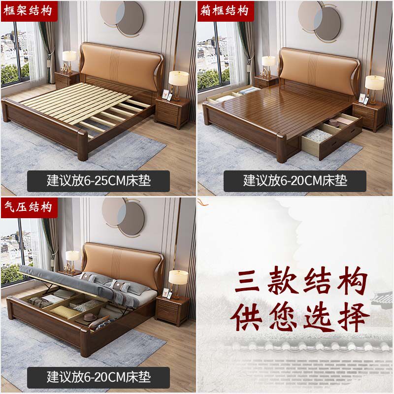全友家居实木中式床真皮软靠床单人双人床气压抽屉高箱储物床婚床