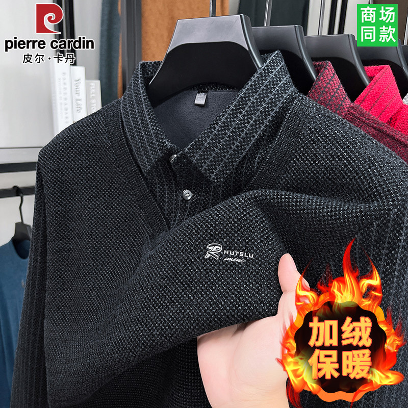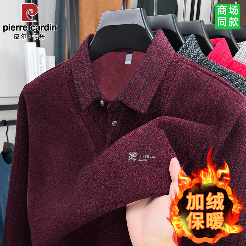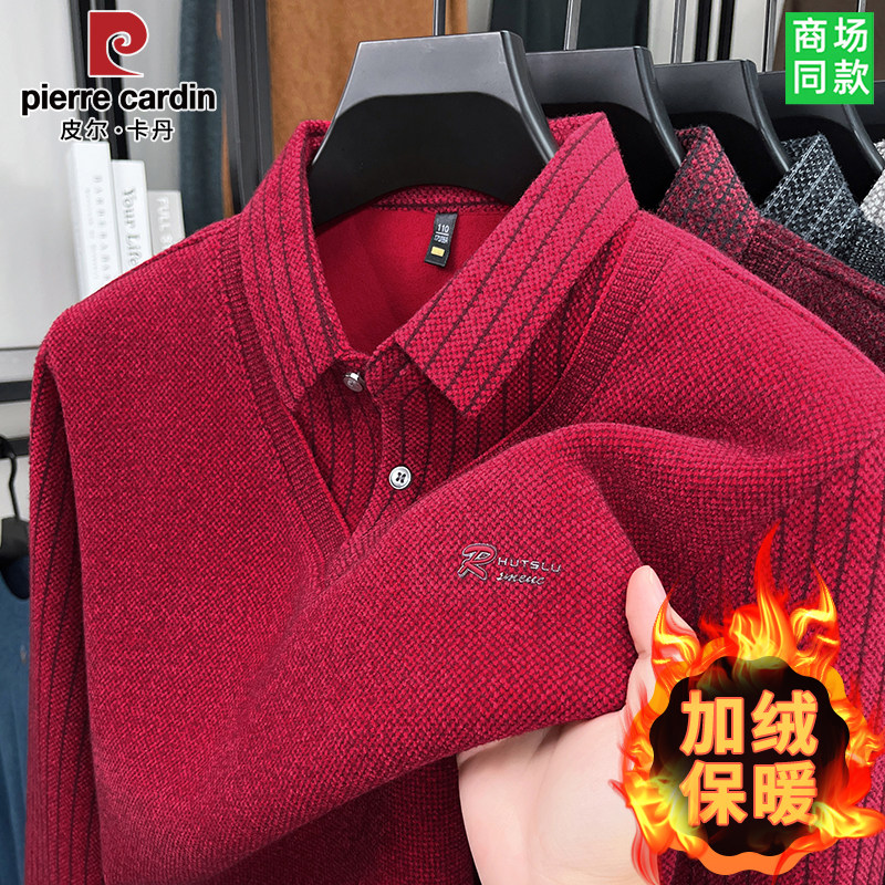 皮尔卡丹加绒加厚衬衫中年爸爸装