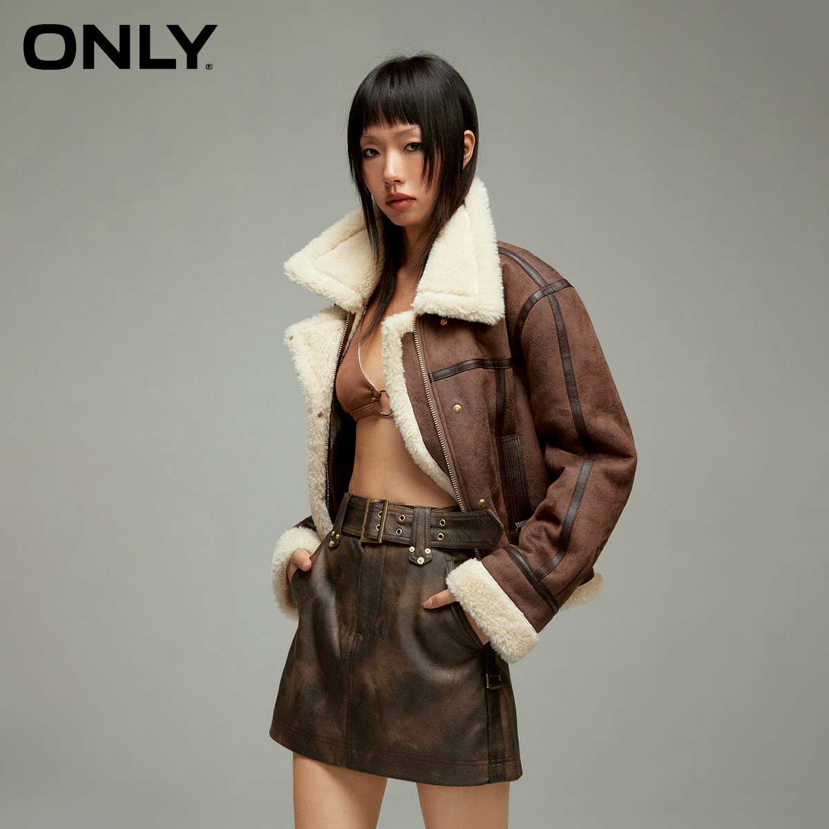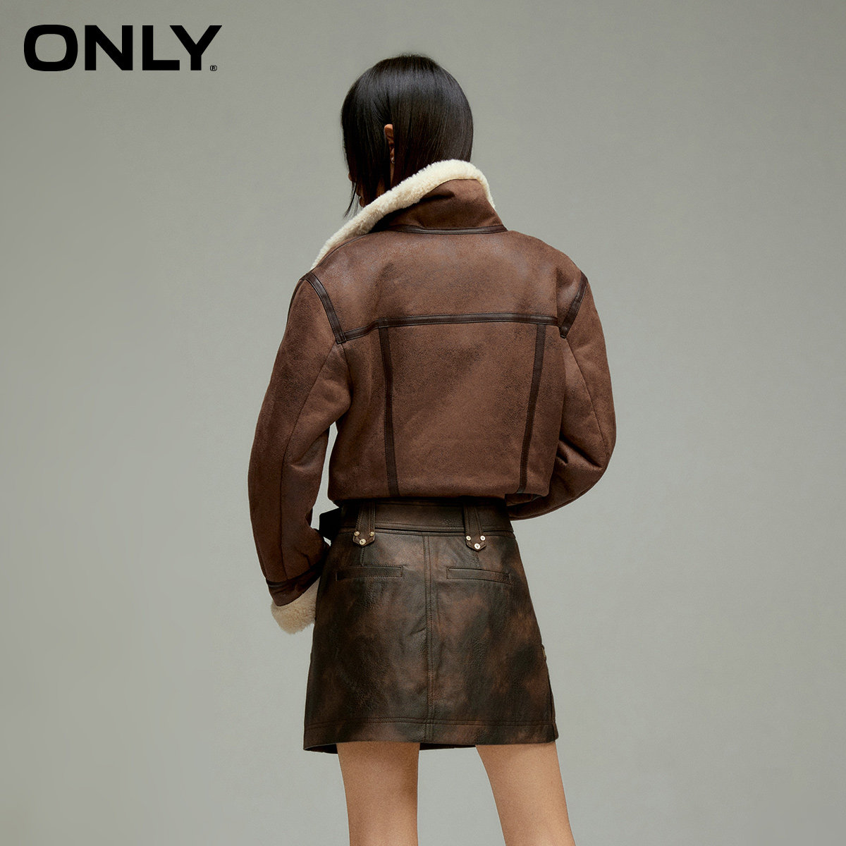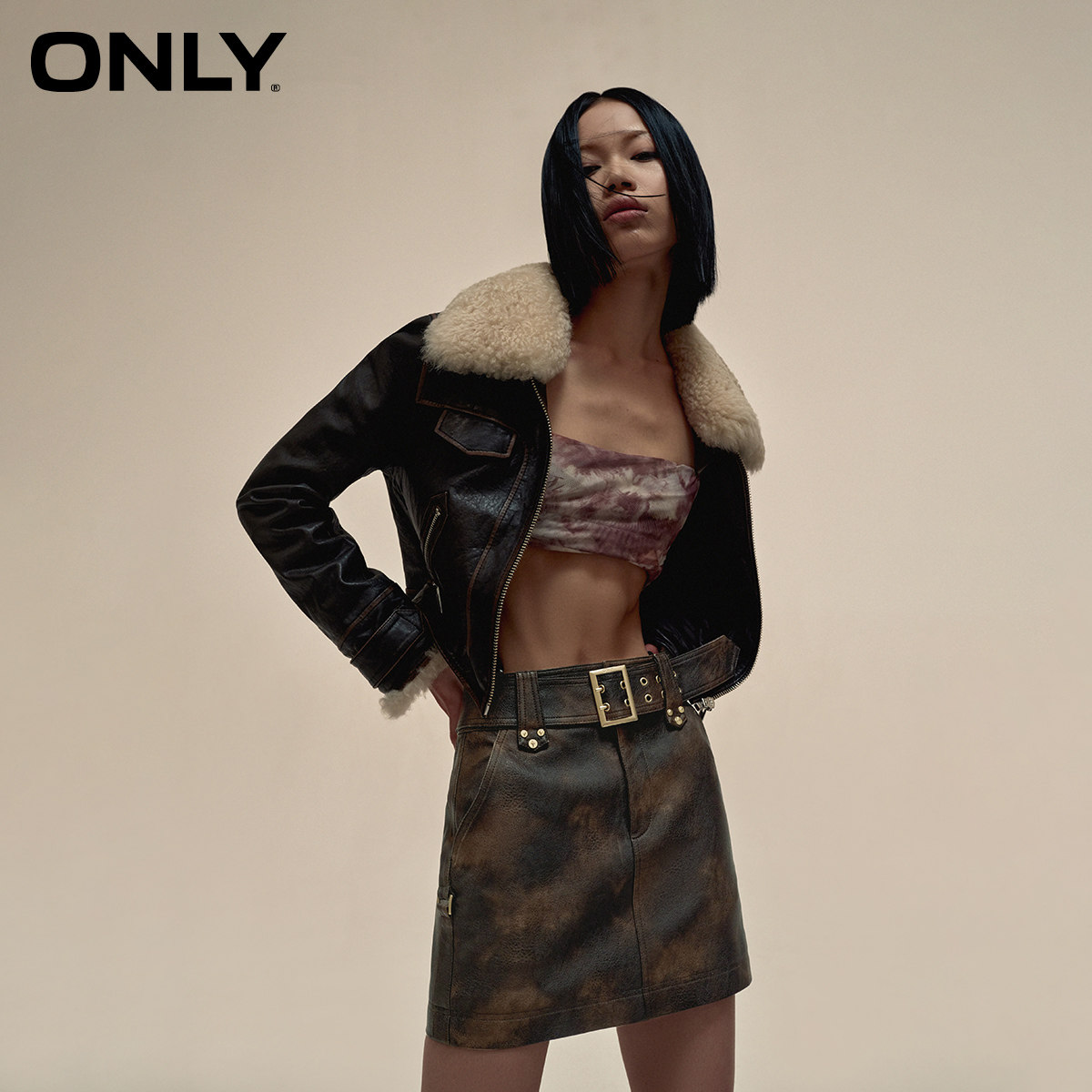 ONLY冬季潮流美拉德做旧洗水短裙PU半身裙女|12416S002
