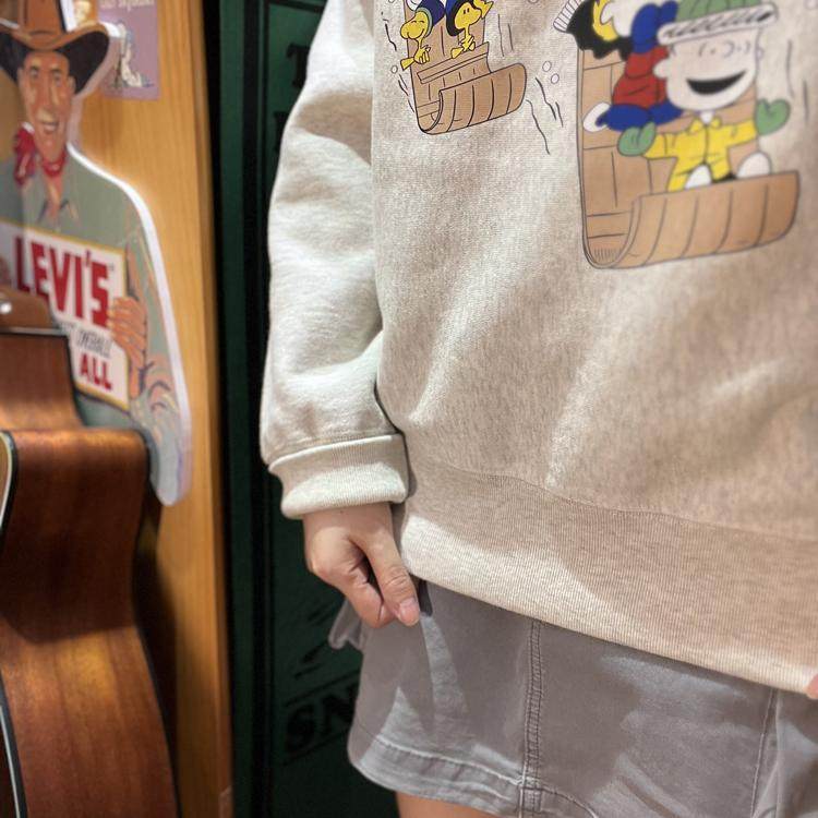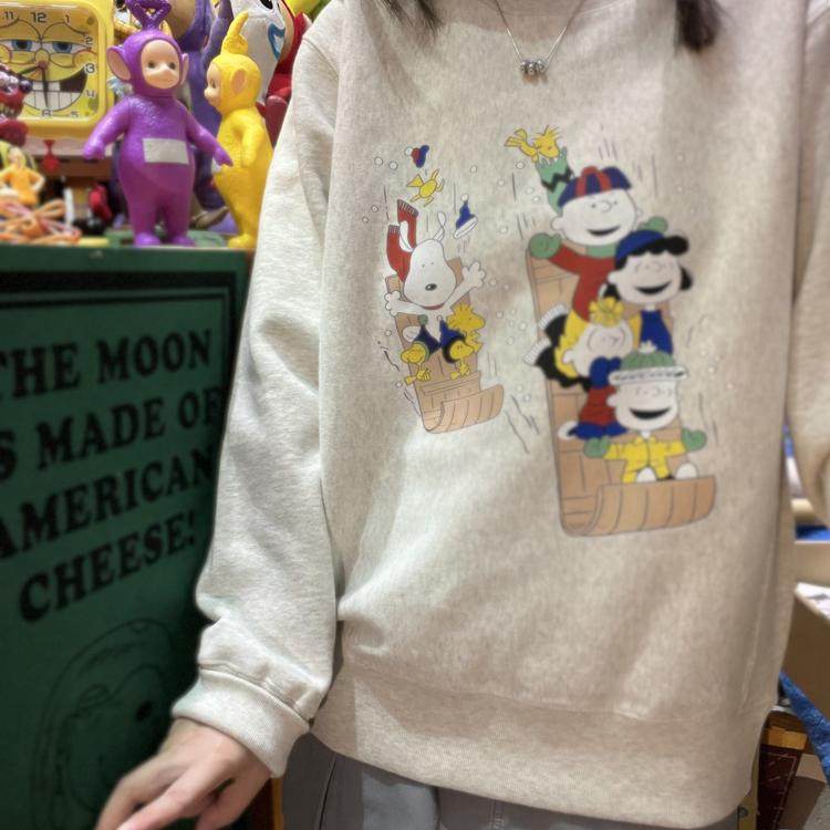 美式复古vintage 可爱滑雪橇布朗史努比 圆领加绒加厚套头卫衣