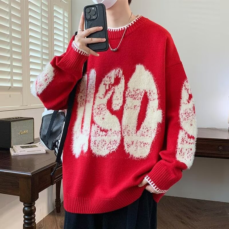 秋冬青少年毛衣圆领特大码潮流针织衫男士新款打底宽松休闲保暖衣