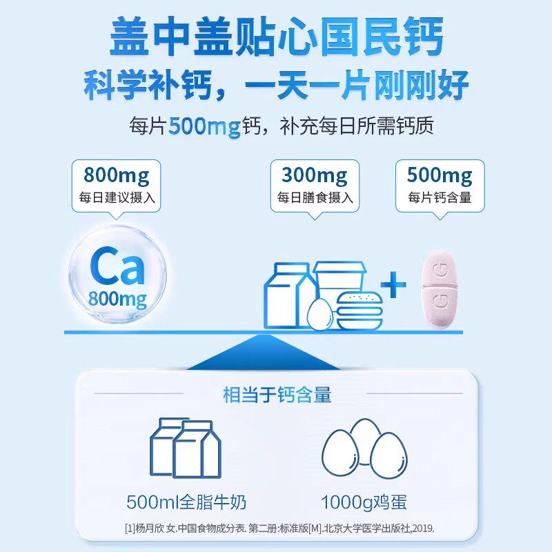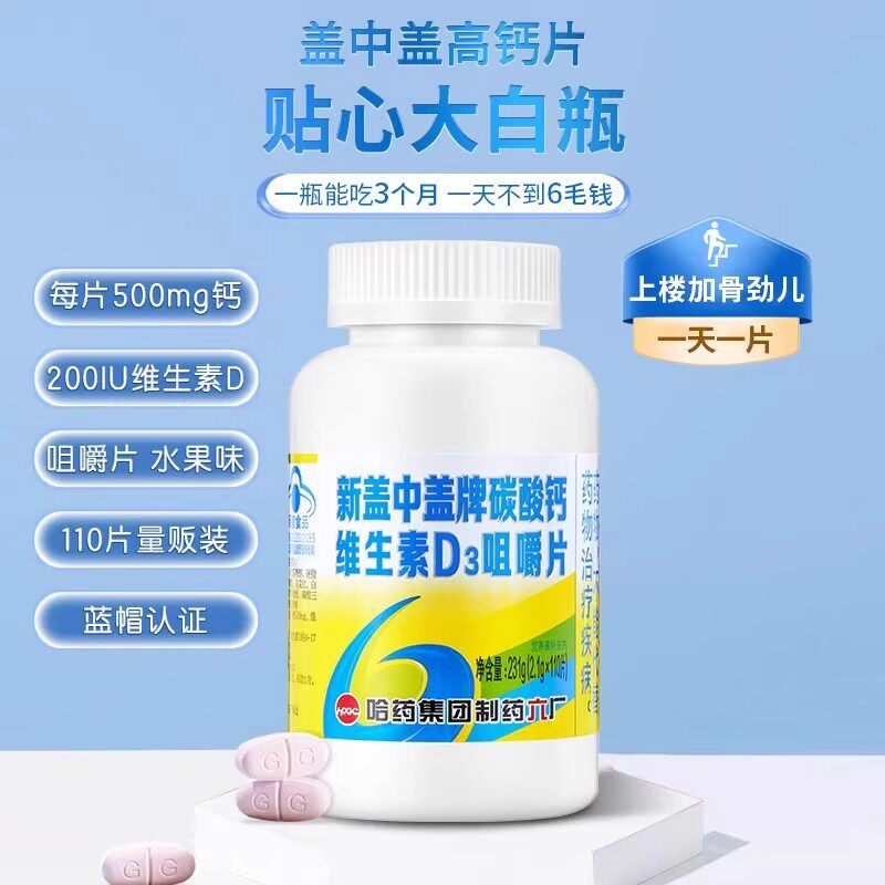 哈药新盖中盖牌碳酸钙维生素D3骨骼补钙关节通用温和钙正品110片