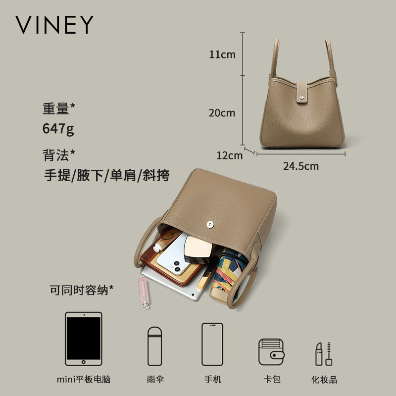Viney水桶包包女2025新款斜挎女包真皮菜篮子大容量通勤单肩大包
