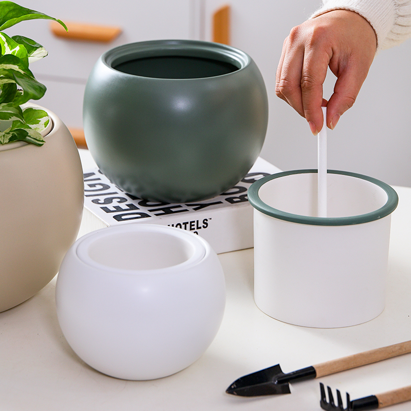 简约陶瓷懒人花盆自吸水绿植多肉盆栽容器仙人掌室内透气懒人花盆