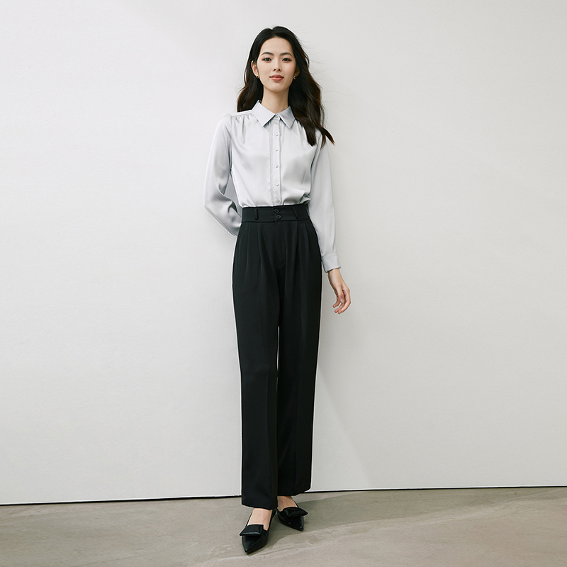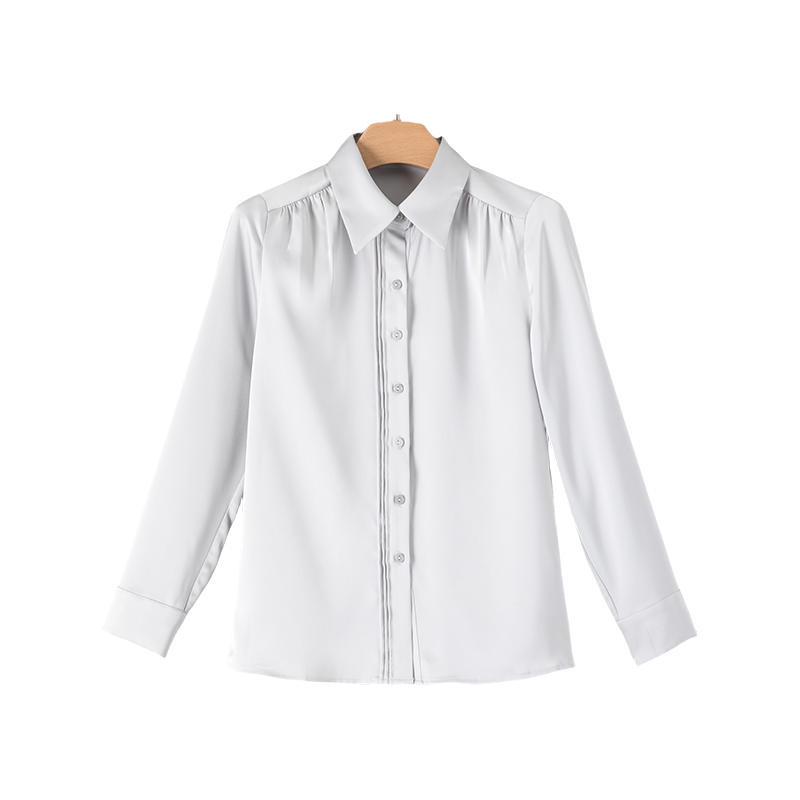 晚白2025年秋新款气质缎面通勤减龄休闲百搭翻领长袖衬衫女