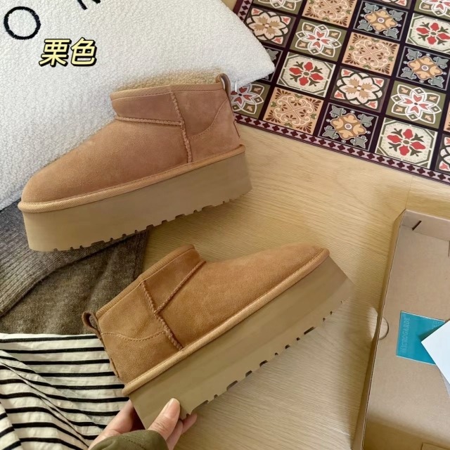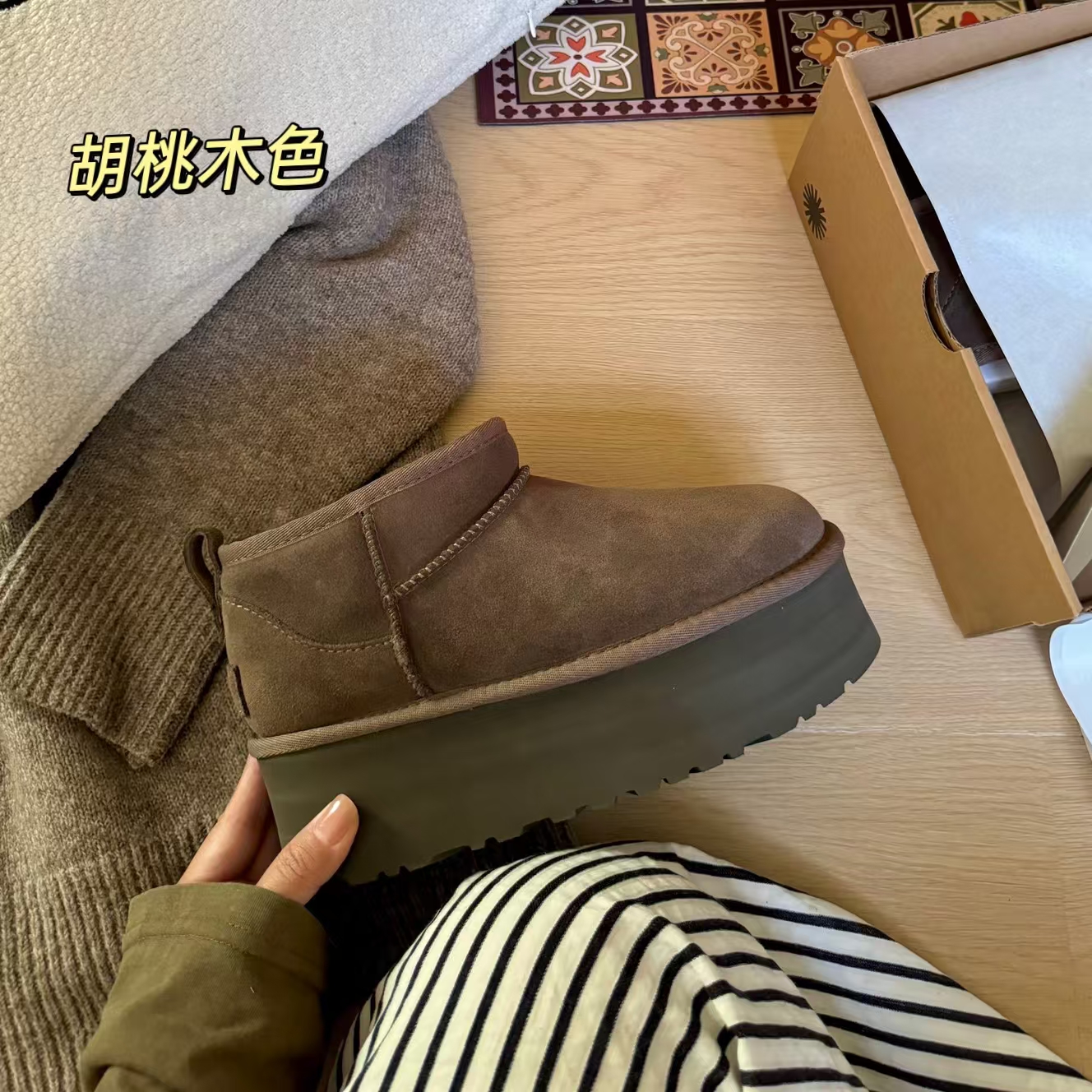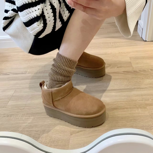 桑坡厚底雪地靴羊皮毛一体女冬加绒增高短筒周冬雨宋妍霏同款mini