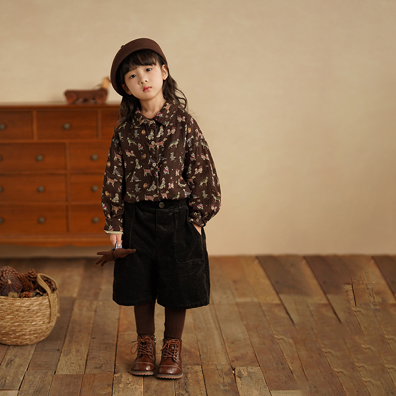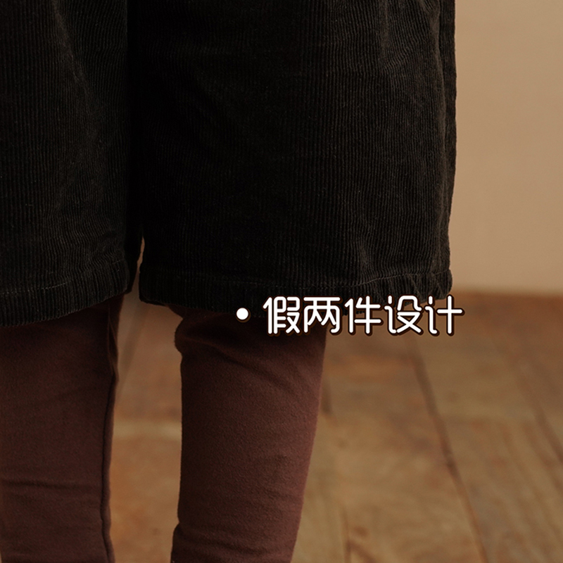砚台家童装复古森系儿童灯芯绒假两件靴裤女童纯棉宝宝秋季裤子潮