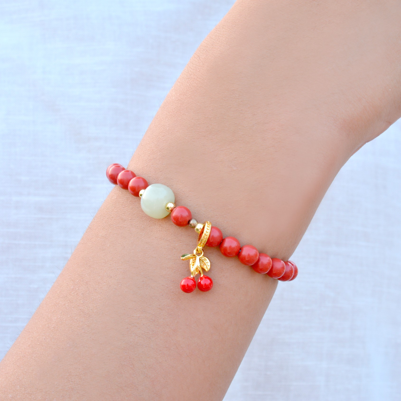 天然正品转运樱桃朱砂手串樱桃车厘子图案活力甜美手链送女友闺蜜