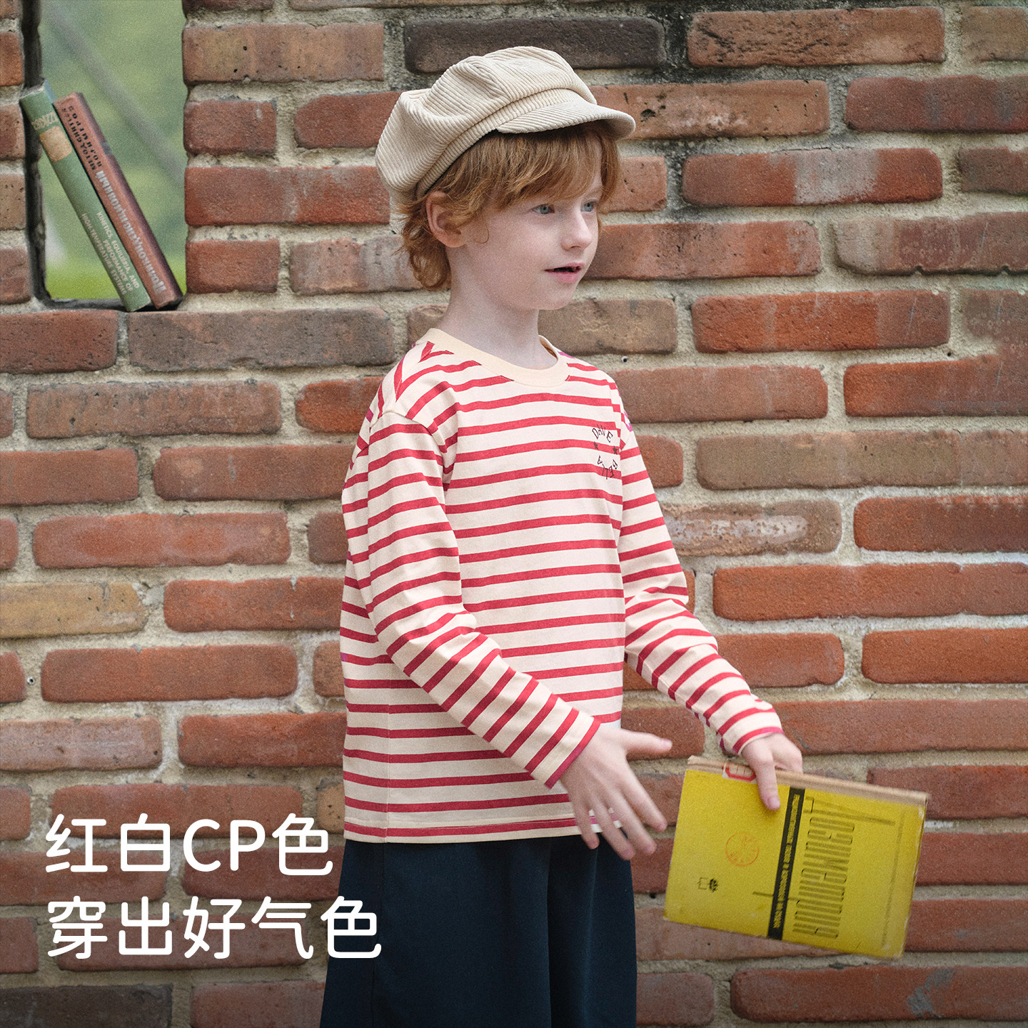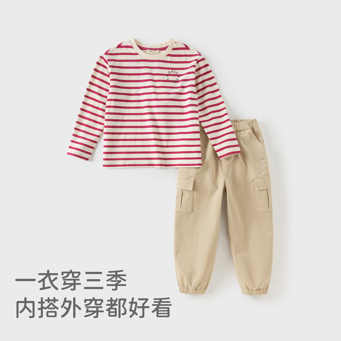 戴维贝拉男童长袖T恤儿童纯棉上衣2026新款秋季男大童条纹打底衫