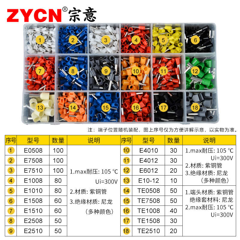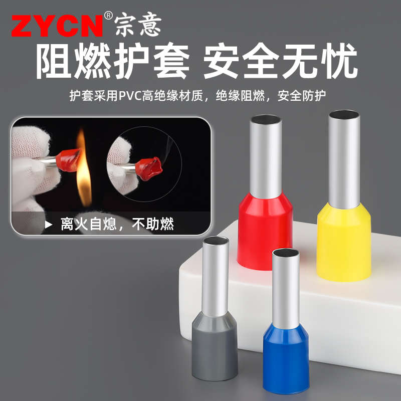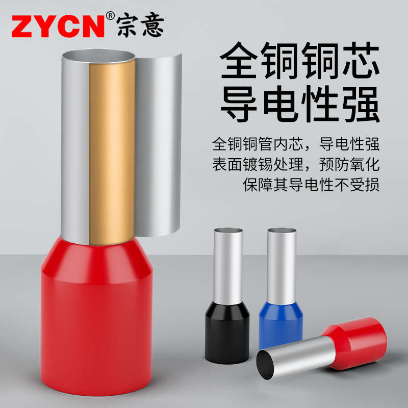 宗意管型预绝缘端子 TE/E系列针形 铜鼻子冷压管状欧式接线套装