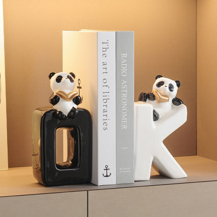 熊猫摆件小众轻奢高档客厅酒柜电视柜书房书架假书书立家居装饰品