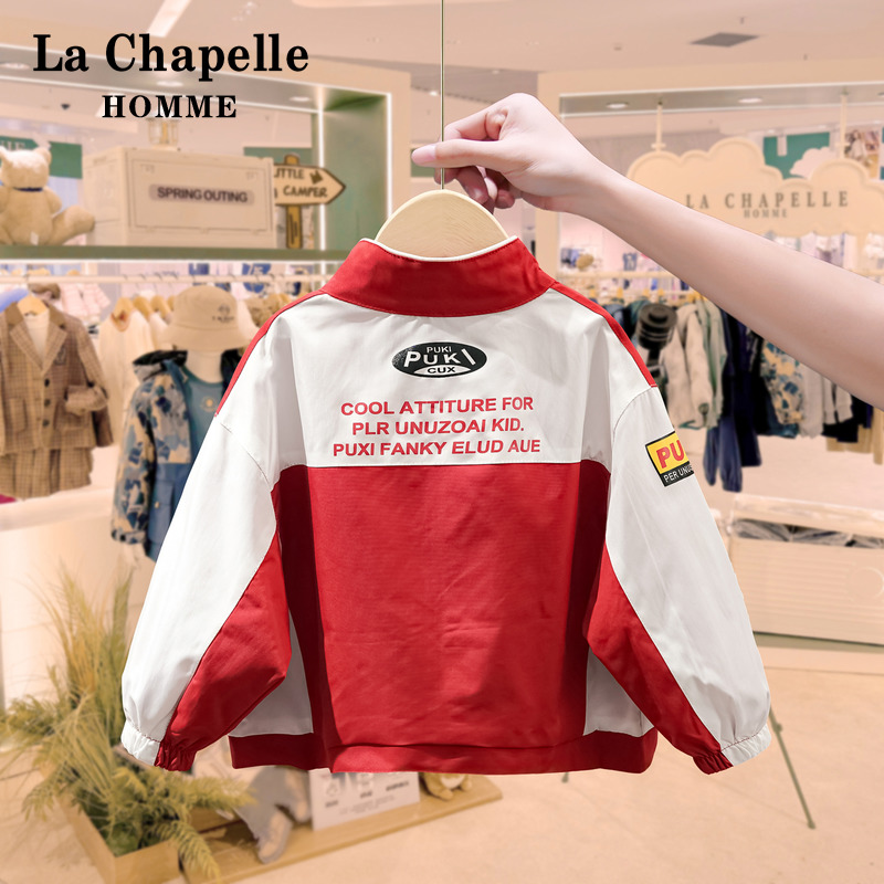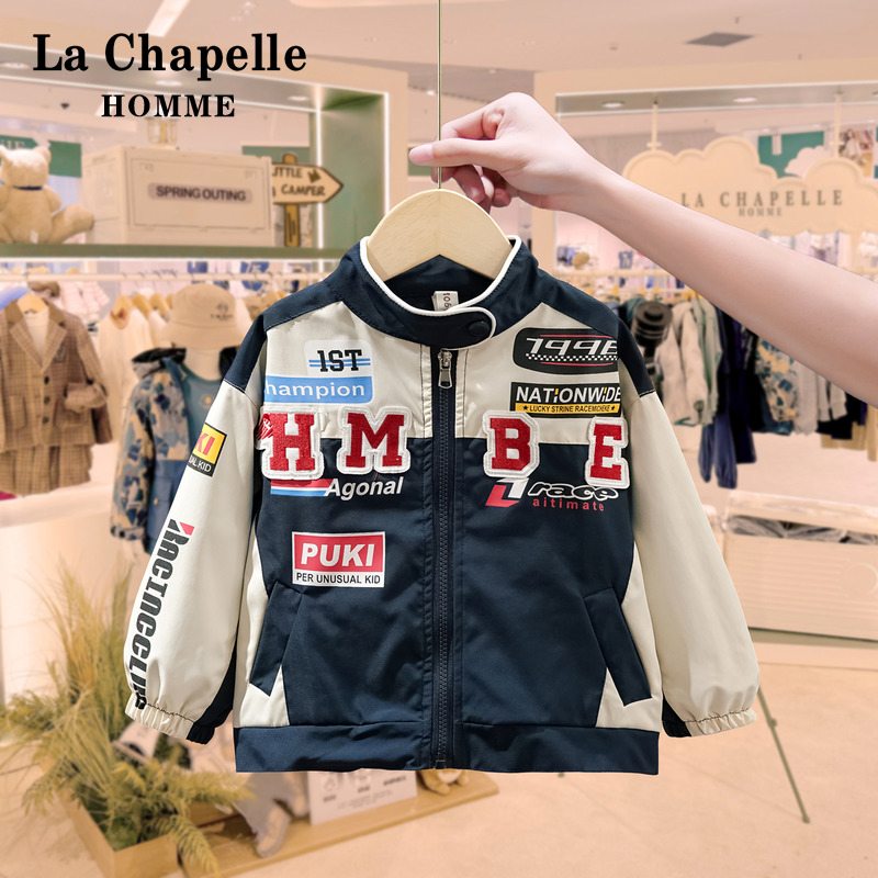 拉夏贝尔童装男童棒球服外套宝宝儿童春秋机车服夹克新款炸街秋装