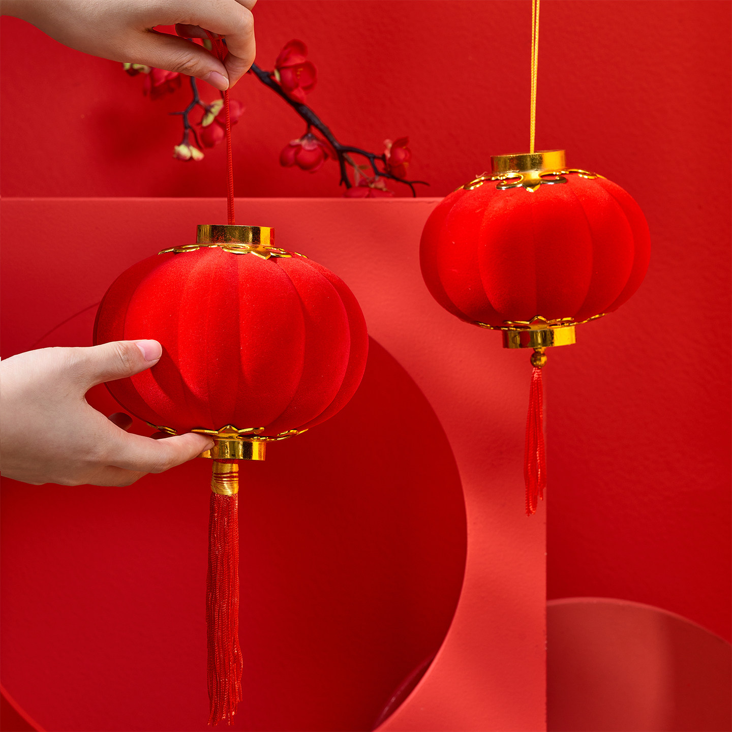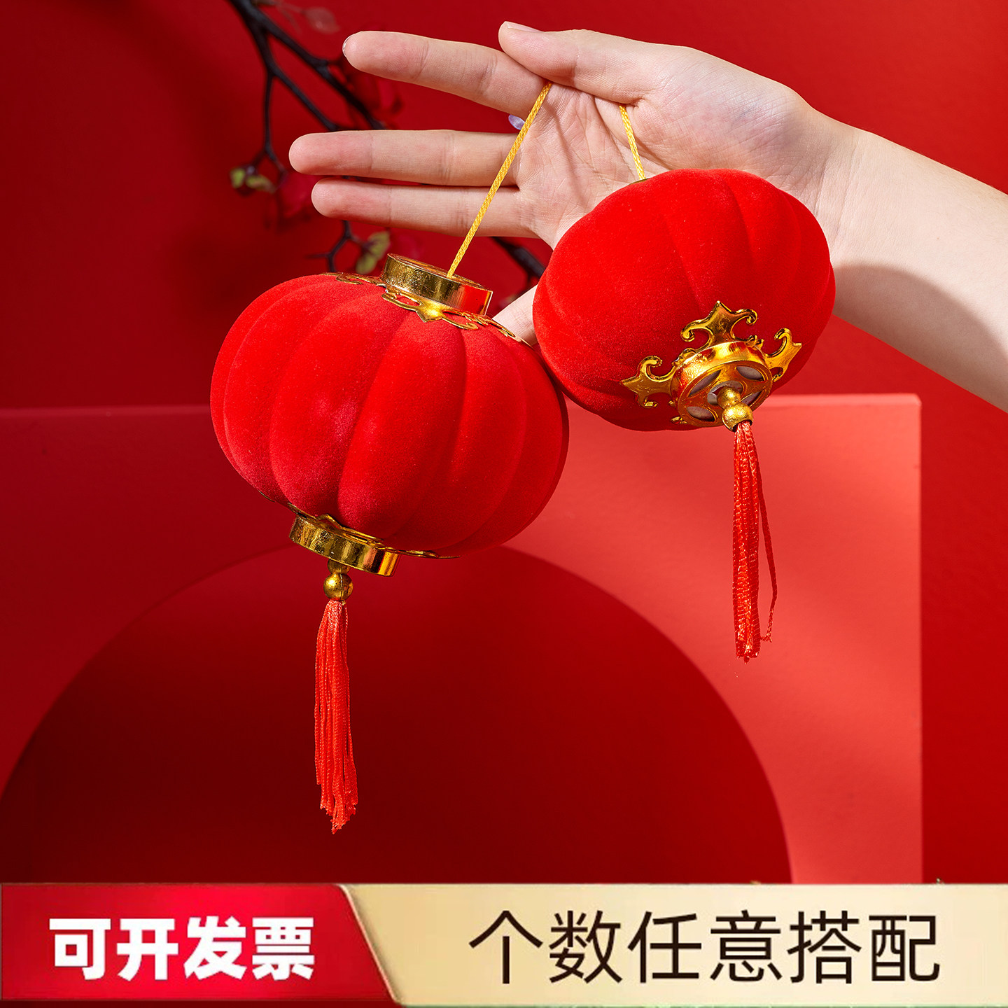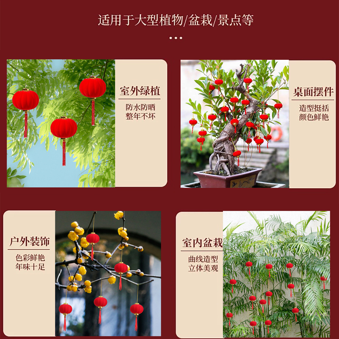 小灯笼挂饰小红植绒新春节盆景装饰大红迷你布置室内防水户外挂树
