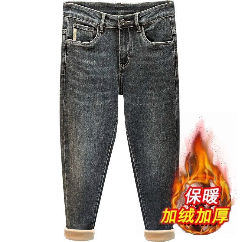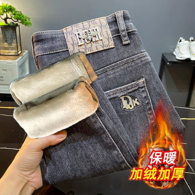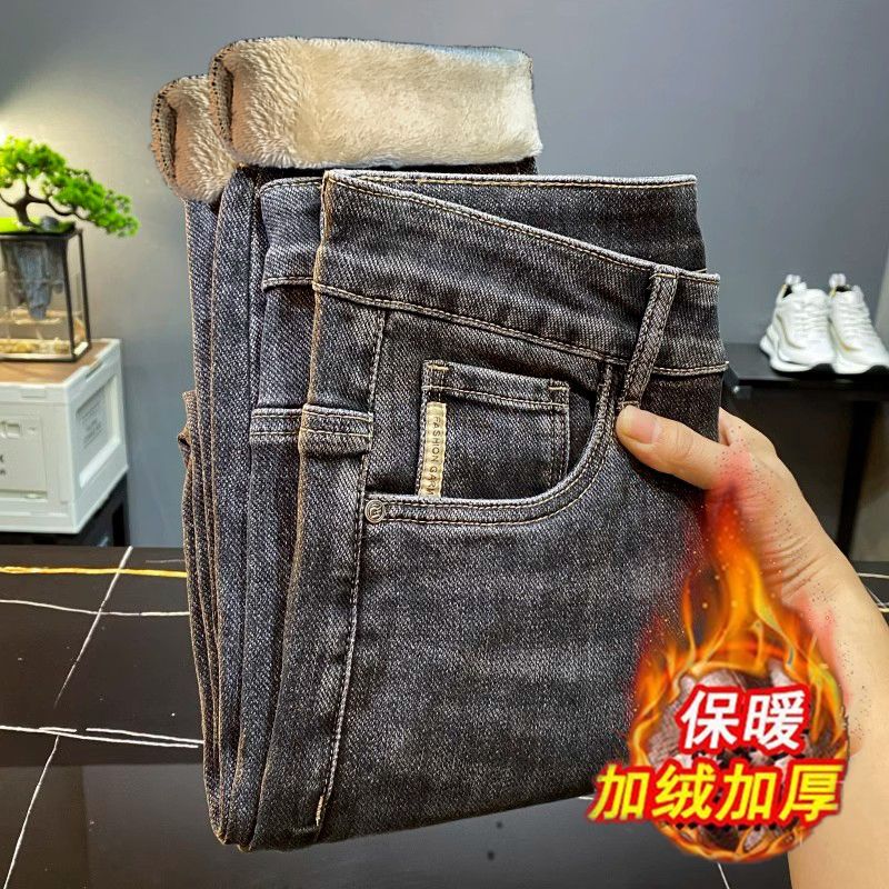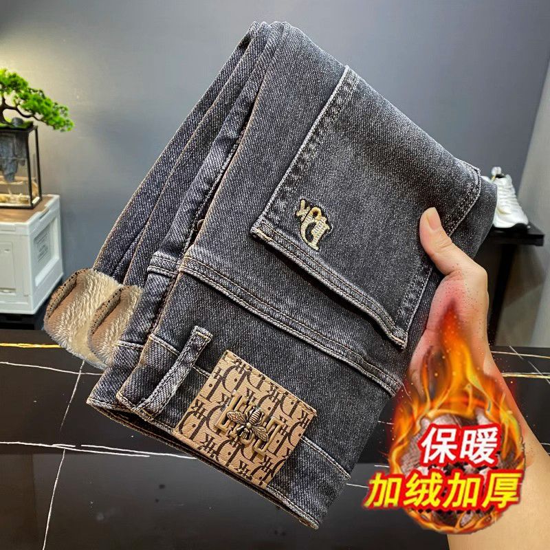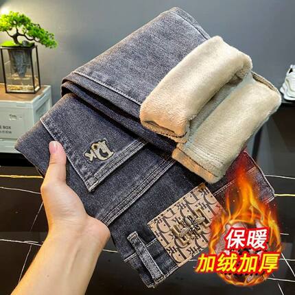 秋冬季厚款加绒加厚高端新塘潮牌牛仔裤男士修身直筒弹力潮流裤子