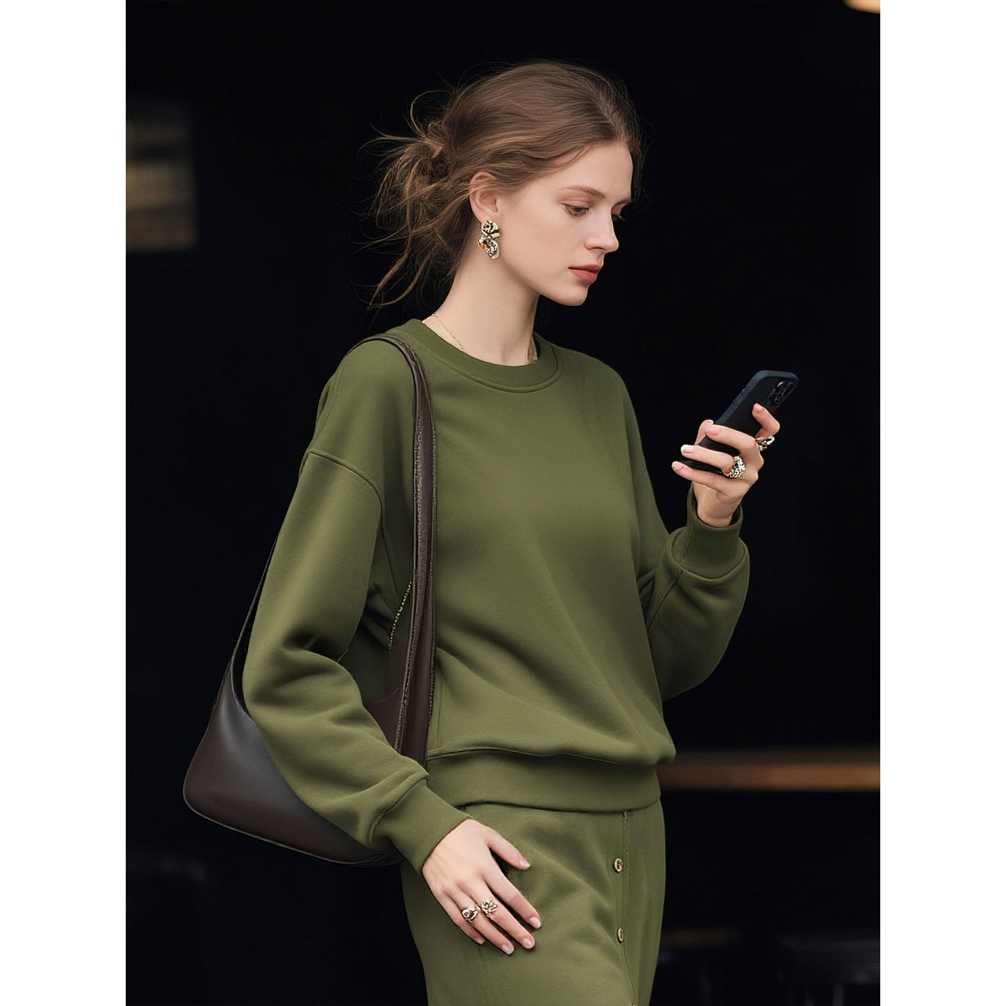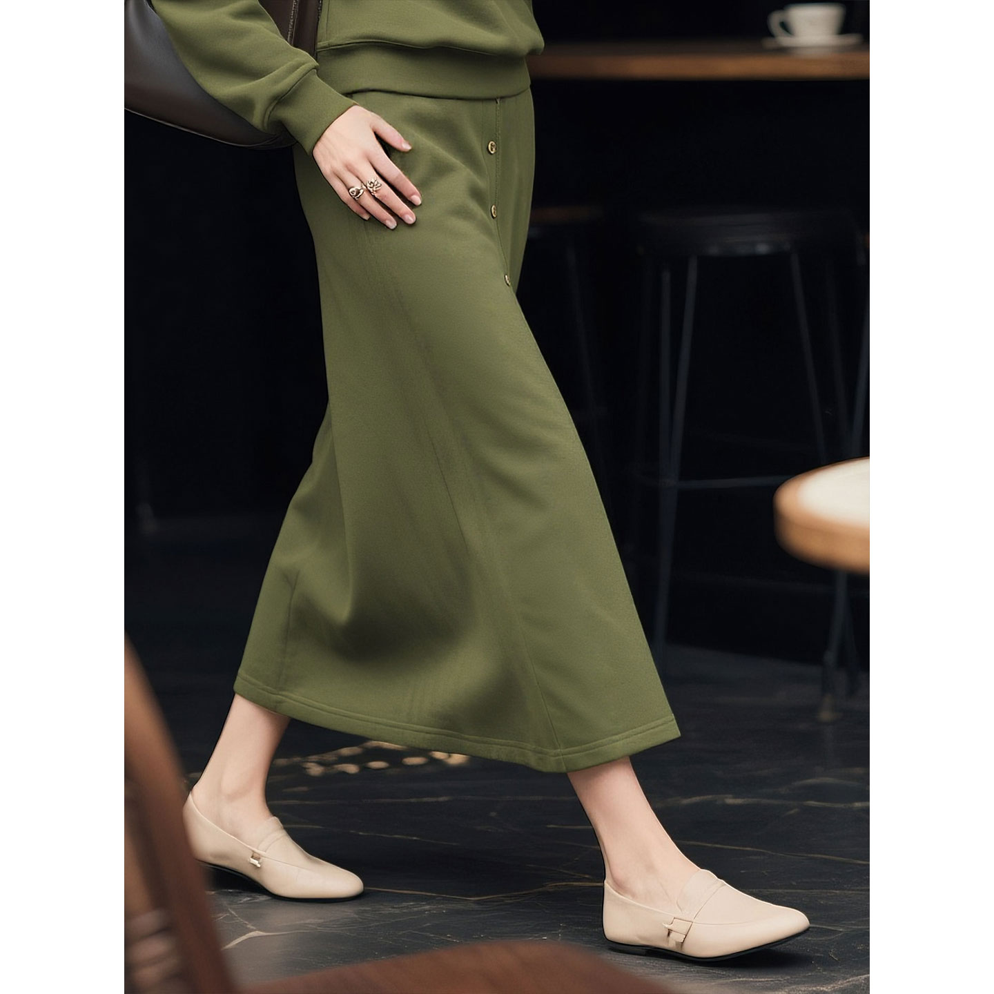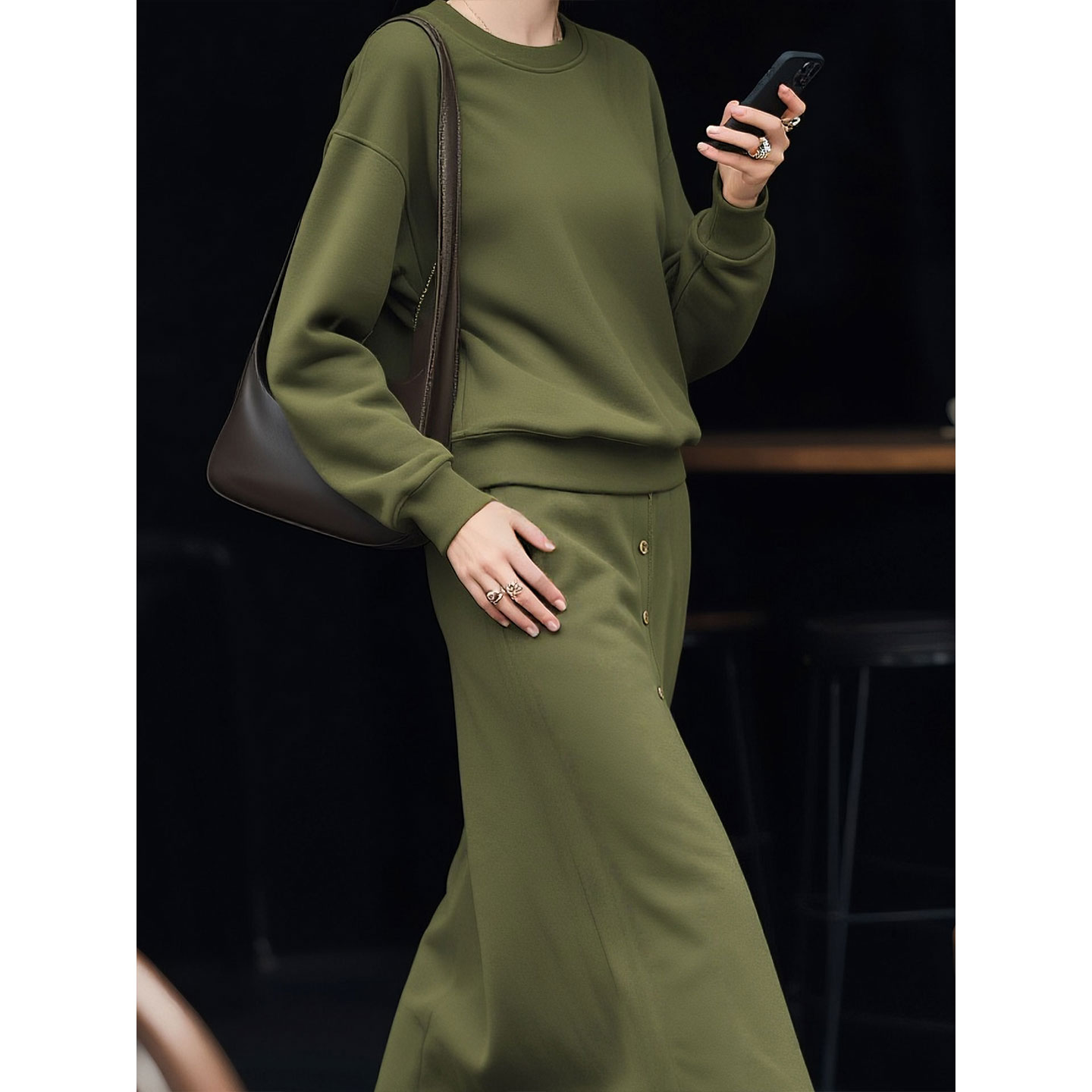 橄榄绿早秋时尚套装女2025秋季新款休闲运动风卫衣半身长裙两件套