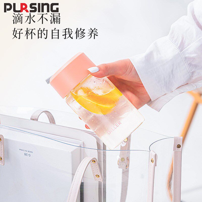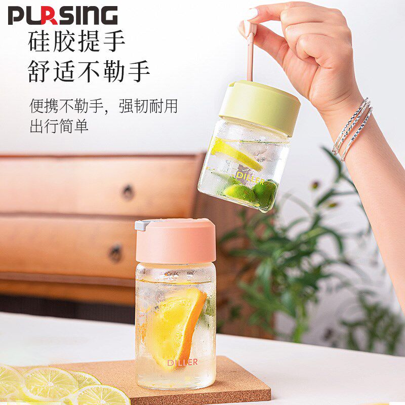 普升时尚小巧便携高硼硅玻璃泡茶茶隔女生办公提绳刻度水杯玻璃杯