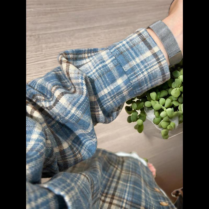 叠穿格子衬衫外套女上衣春秋新款高级感法式独特别致宽松长袖衬衫