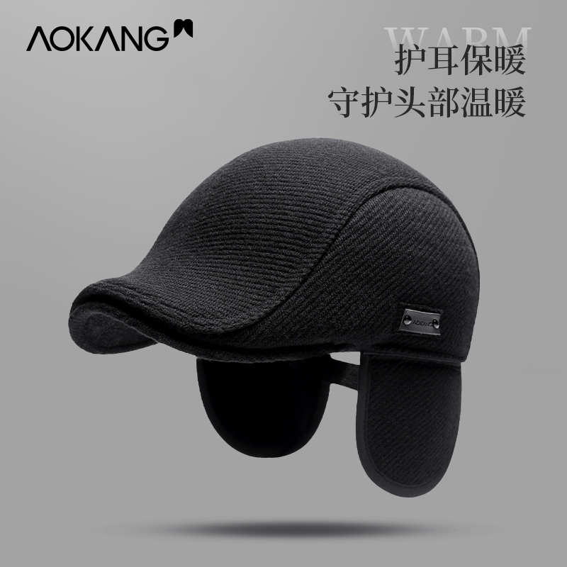 中老年人帽子男士冬天爸爸爷爷护耳短绒前进帽老头秋冬保暖鸭舌帽