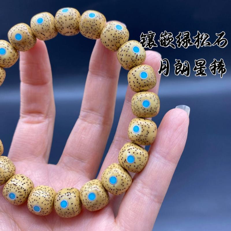 海南星月菩提子手串单圈手链男女款老籽镶嵌正月文玩佛珠绕指柔