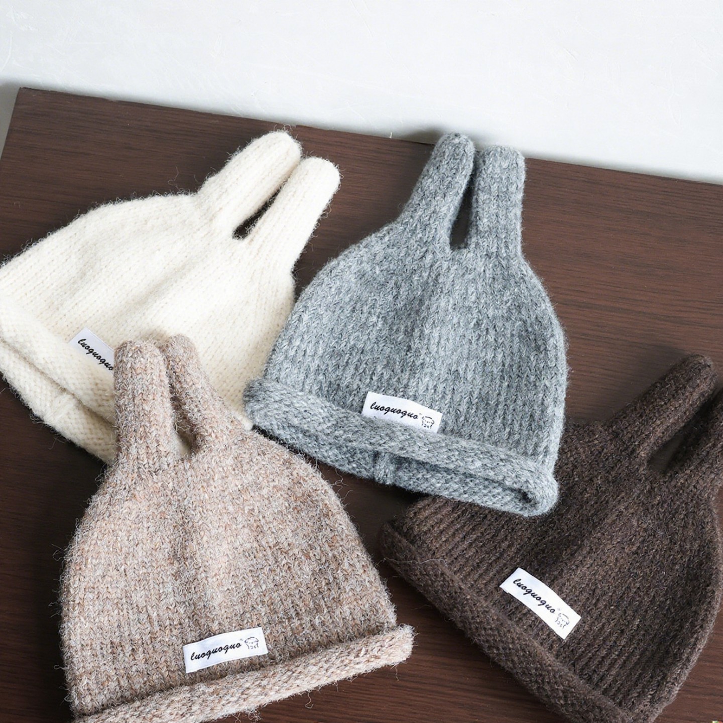 宝宝秋冬新款帽子男女宝宝可爱兔耳朵针织帽保暖防风护耳毛线帽子