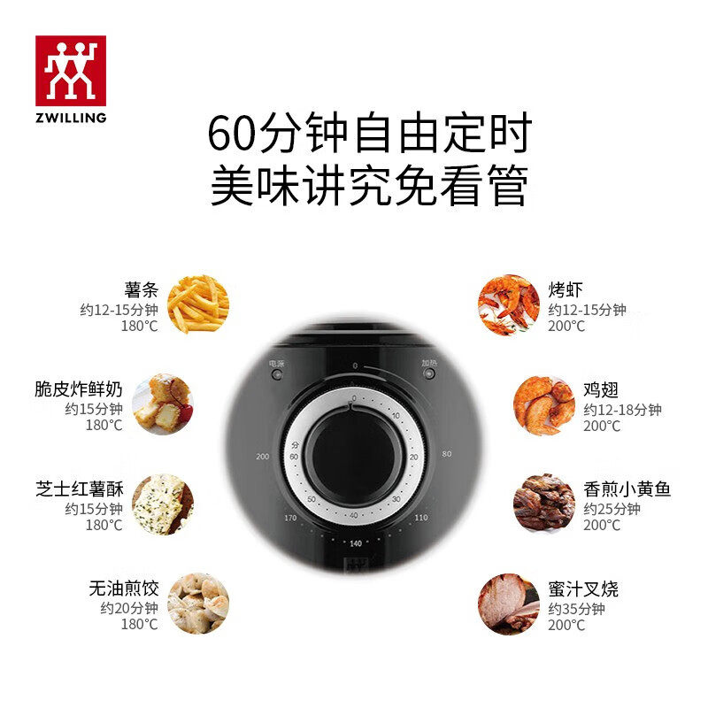 双立人空气炸锅小型家用低脂多功能无油一体电炸锅烤箱3.5L大容量