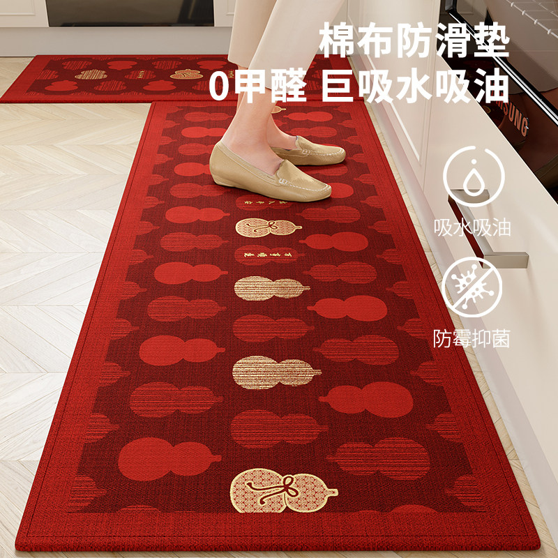 2026新款马年厨房地垫吸水防滑防油可擦免洗脚垫吸水耐脏喜庆地毯