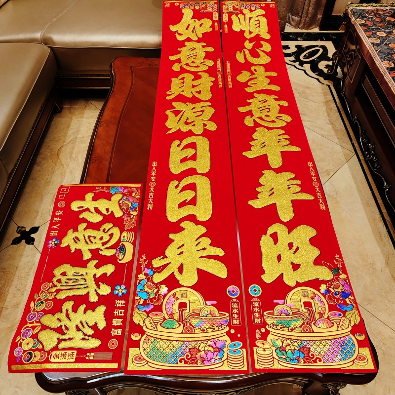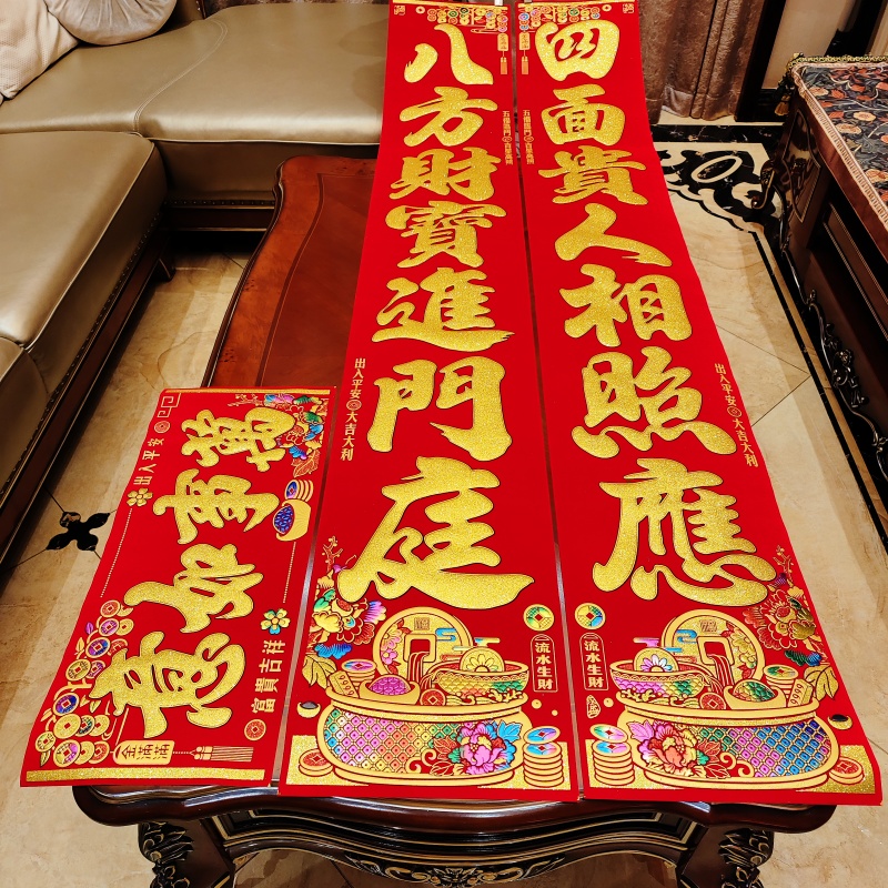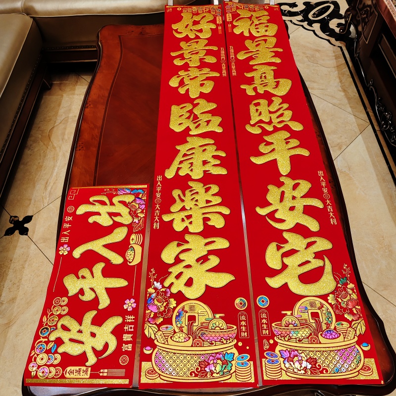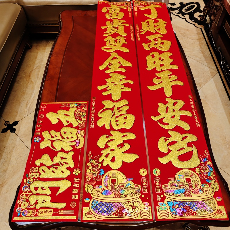 对联2025新款高档绒布蛇年新年新春植绒春联春节家用背胶大门门贴