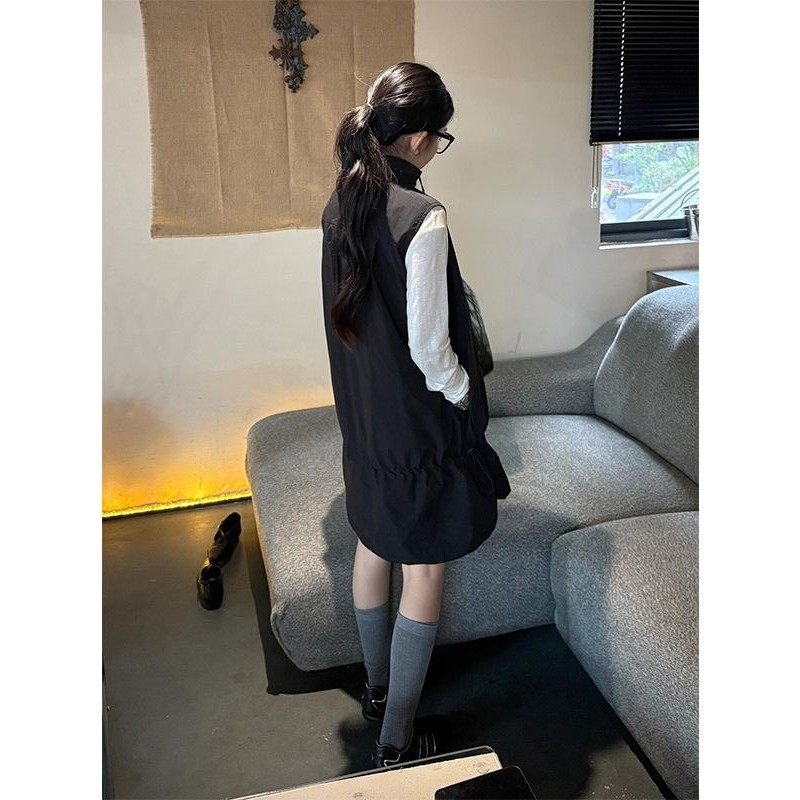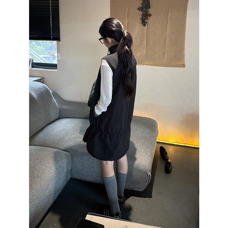 又酷又飒的穿搭韩系独特超好看黑色背心连衣裙叠穿t恤套装女秋季