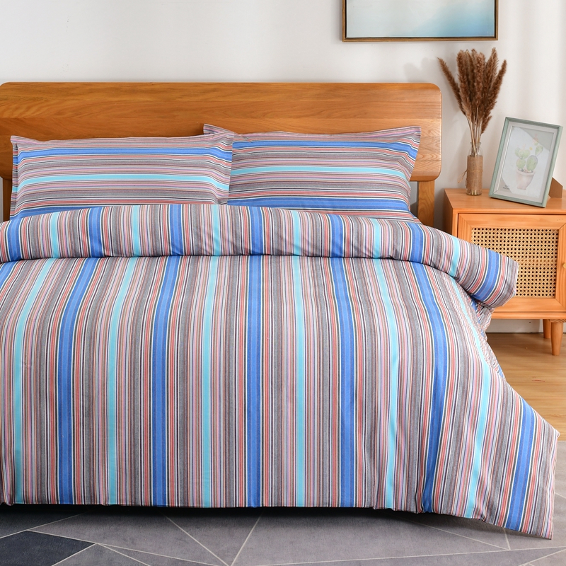 保暖纯棉老粗布四件套条纹床单式