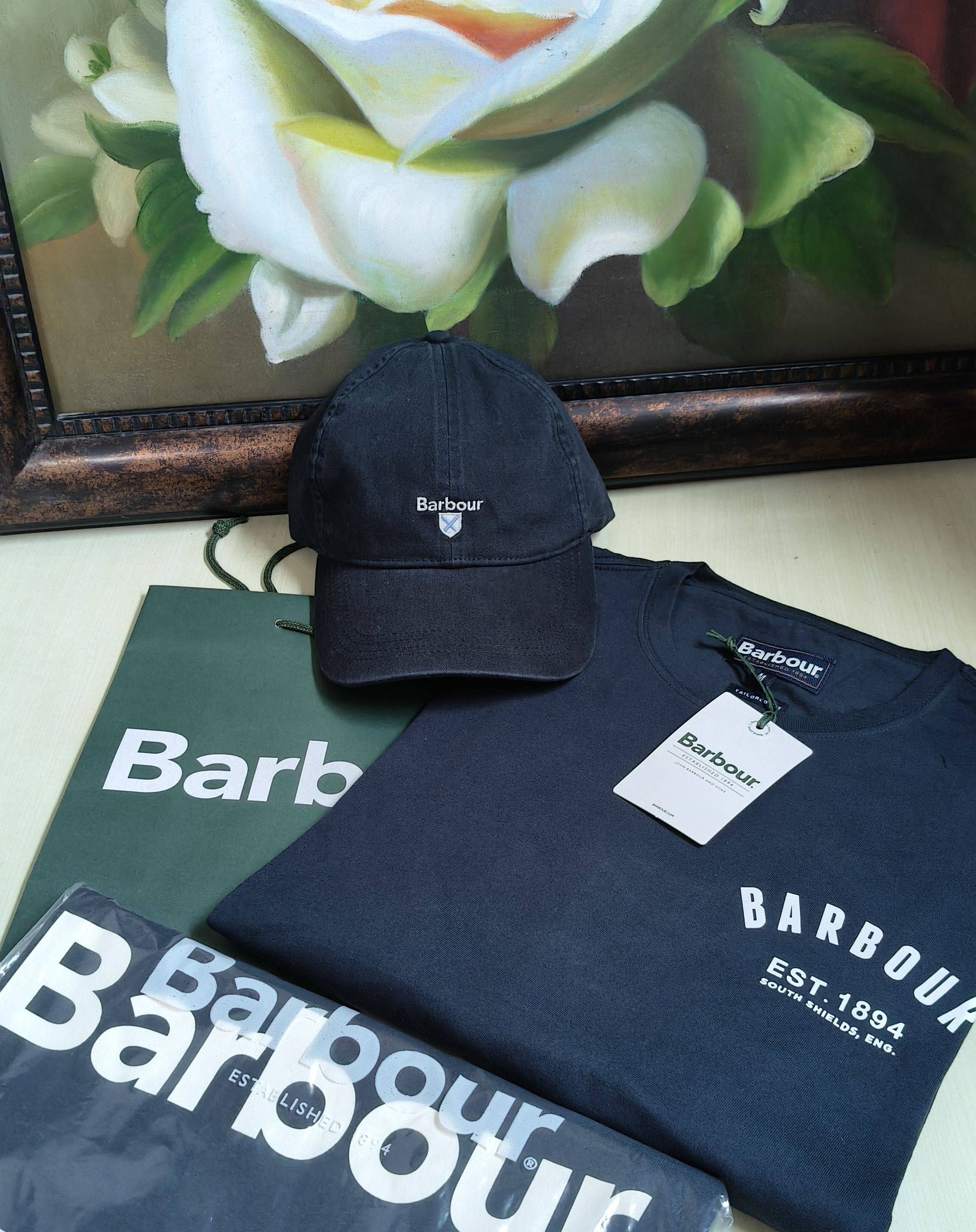 清仓现货Barbour logo T shirt运动休闲字母圆领T恤短袖纯棉上衣