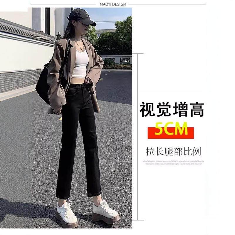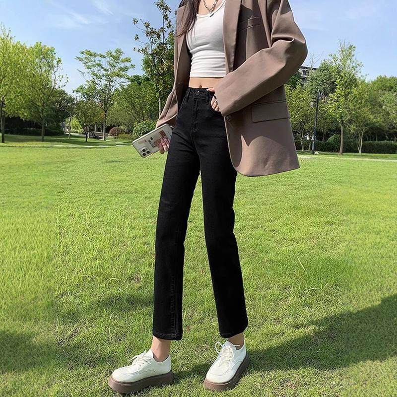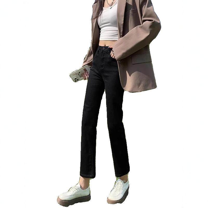 黑色直筒显瘦牛仔裤女春秋烟管2025新款小个子八九分夏季薄款裤子