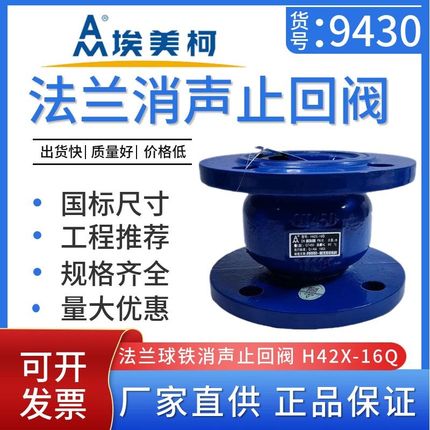 埃美柯9430 H42X16Q球铁法兰消声止回阀DN50 60 80 125 150 200