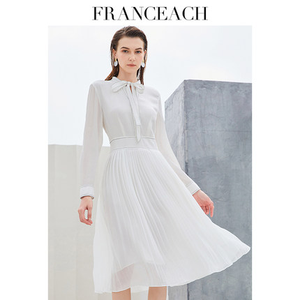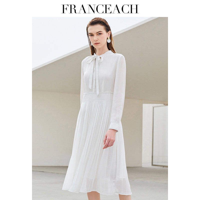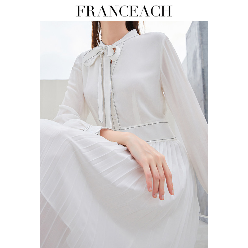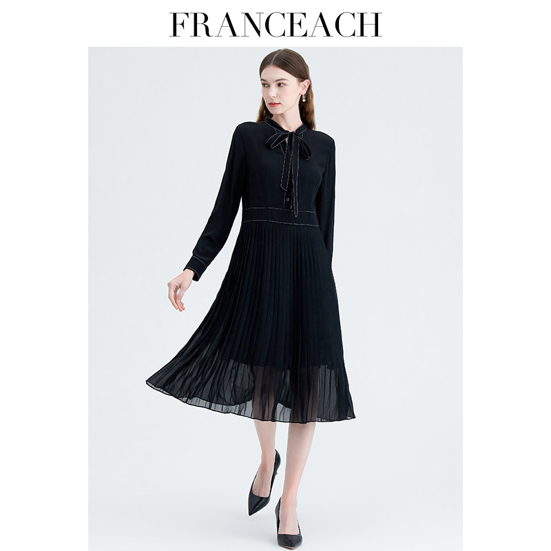 法涵意弛2024春新款撞色真丝连衣裙桑蚕丝年轻款衬衫式气质百褶裙