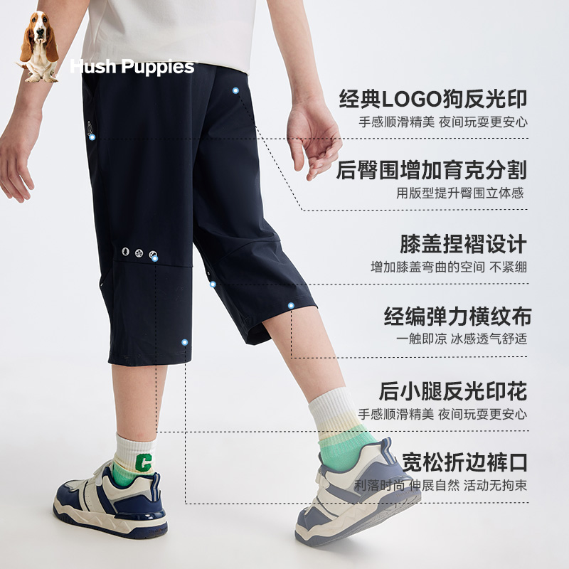 暇步士童装男童七分裤2025夏季新款中大童凉感短裤儿童防晒运动裤