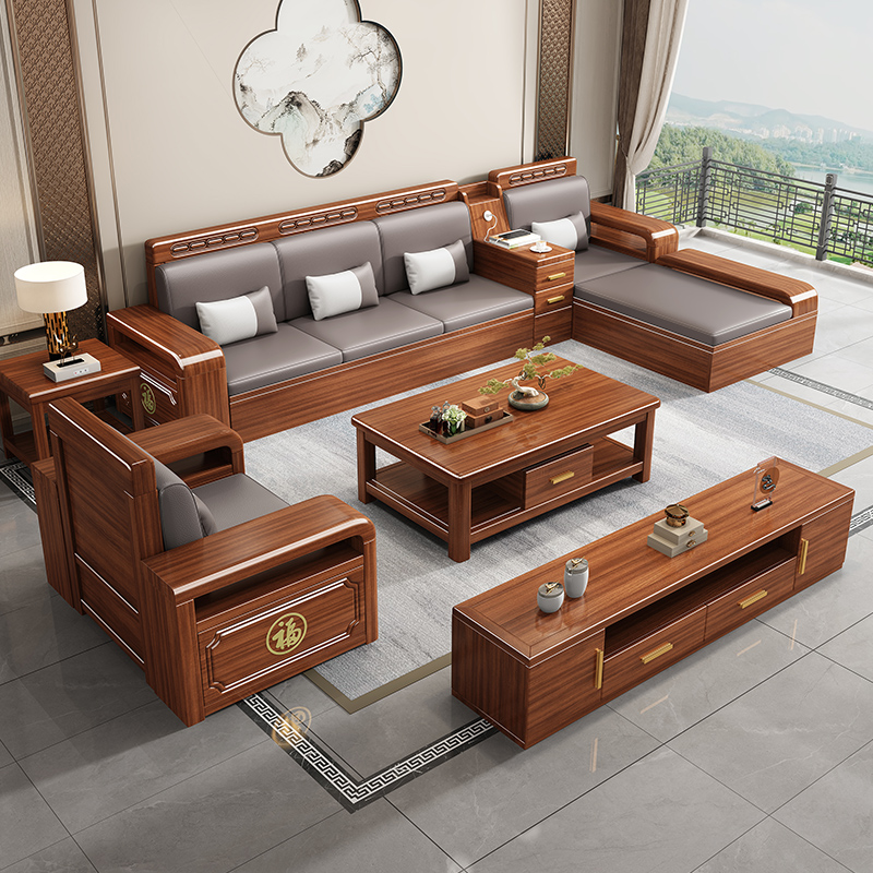 芝华士新中式金丝胡桃木实木沙发组合大小户型冬夏两用客厅沙发组