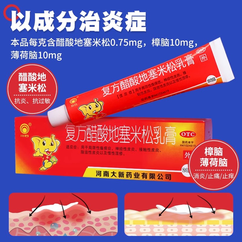 【川石】复方醋酸地塞米松乳膏0.075%1%1%*20g*1支/盒脂溢性皮炎慢性湿疹