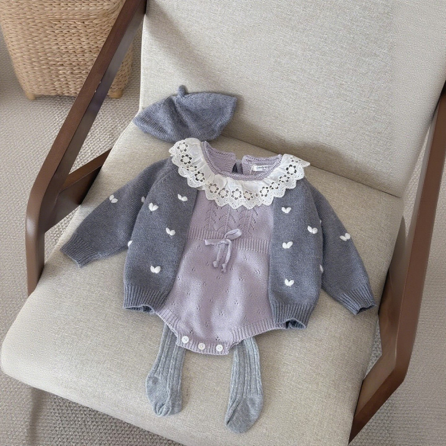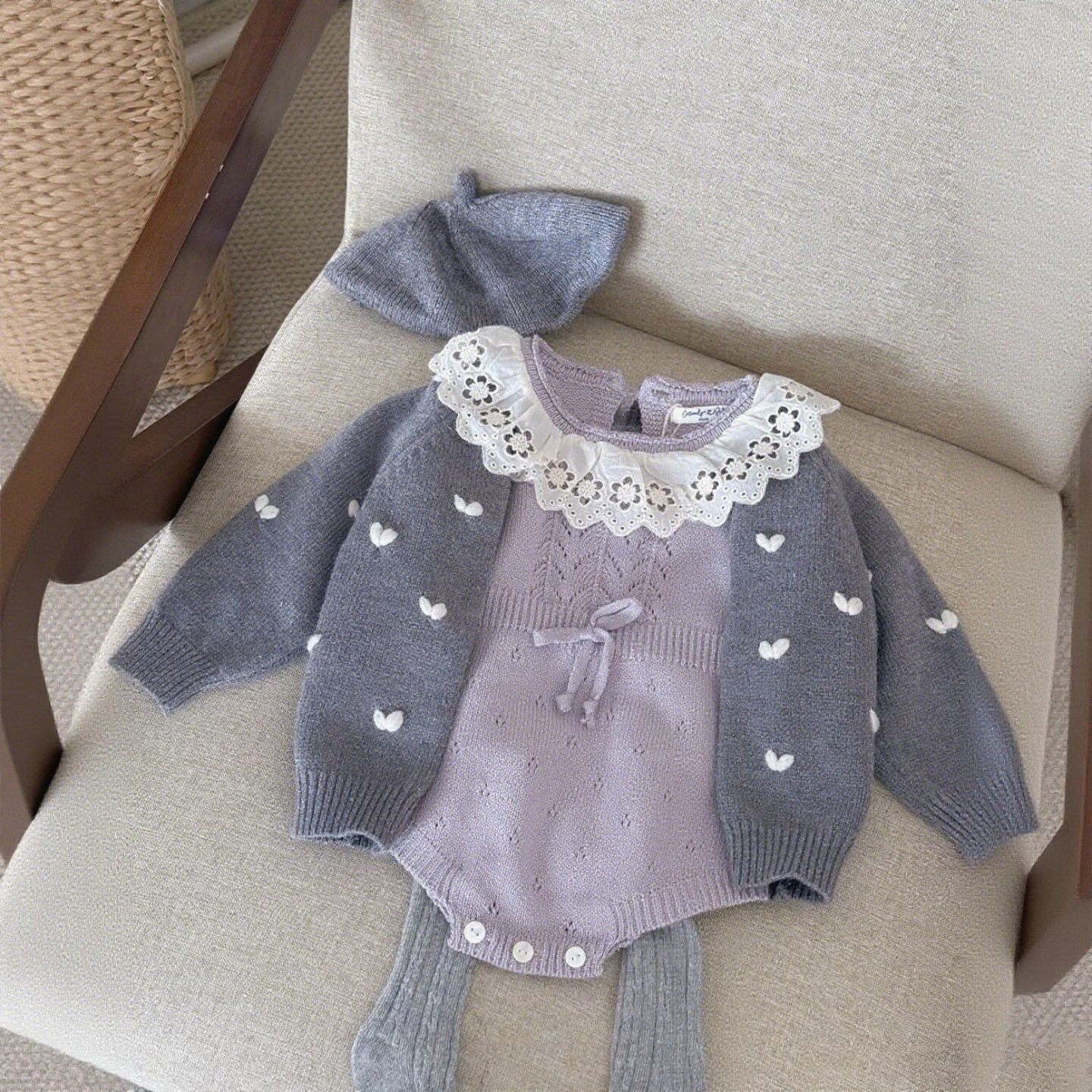 婴儿衣服秋季新款套装女宝宝爱心针织开衫包屁哈衣两件套针织爬服