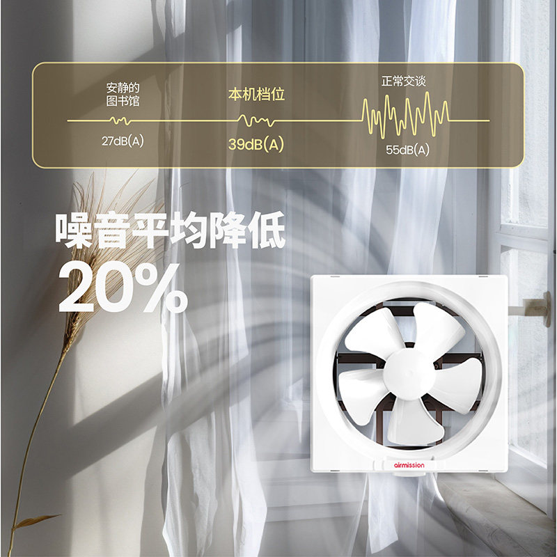 金羚美胜变频排气扇厨房8/10寸换气扇卫生间方形排风扇百叶窗风机