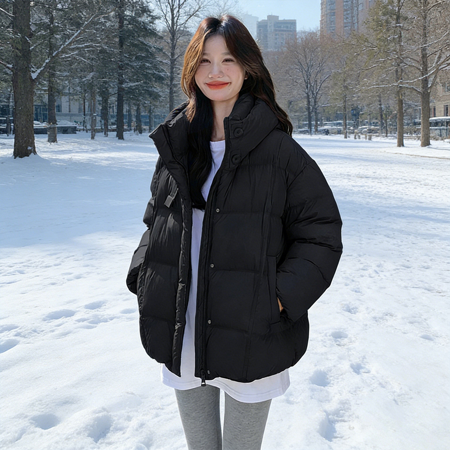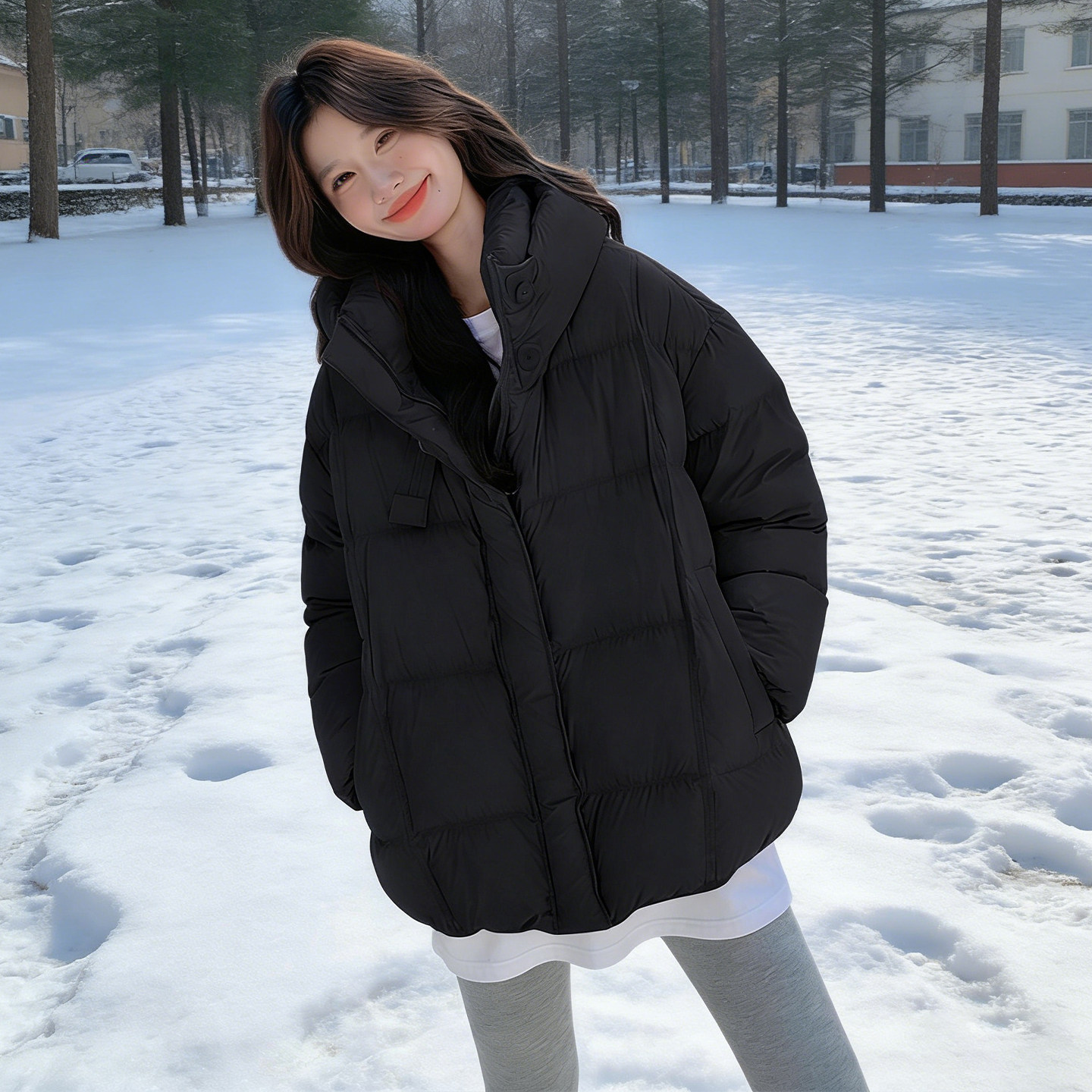 特大码胖mm设计感休闲百搭棉衣女