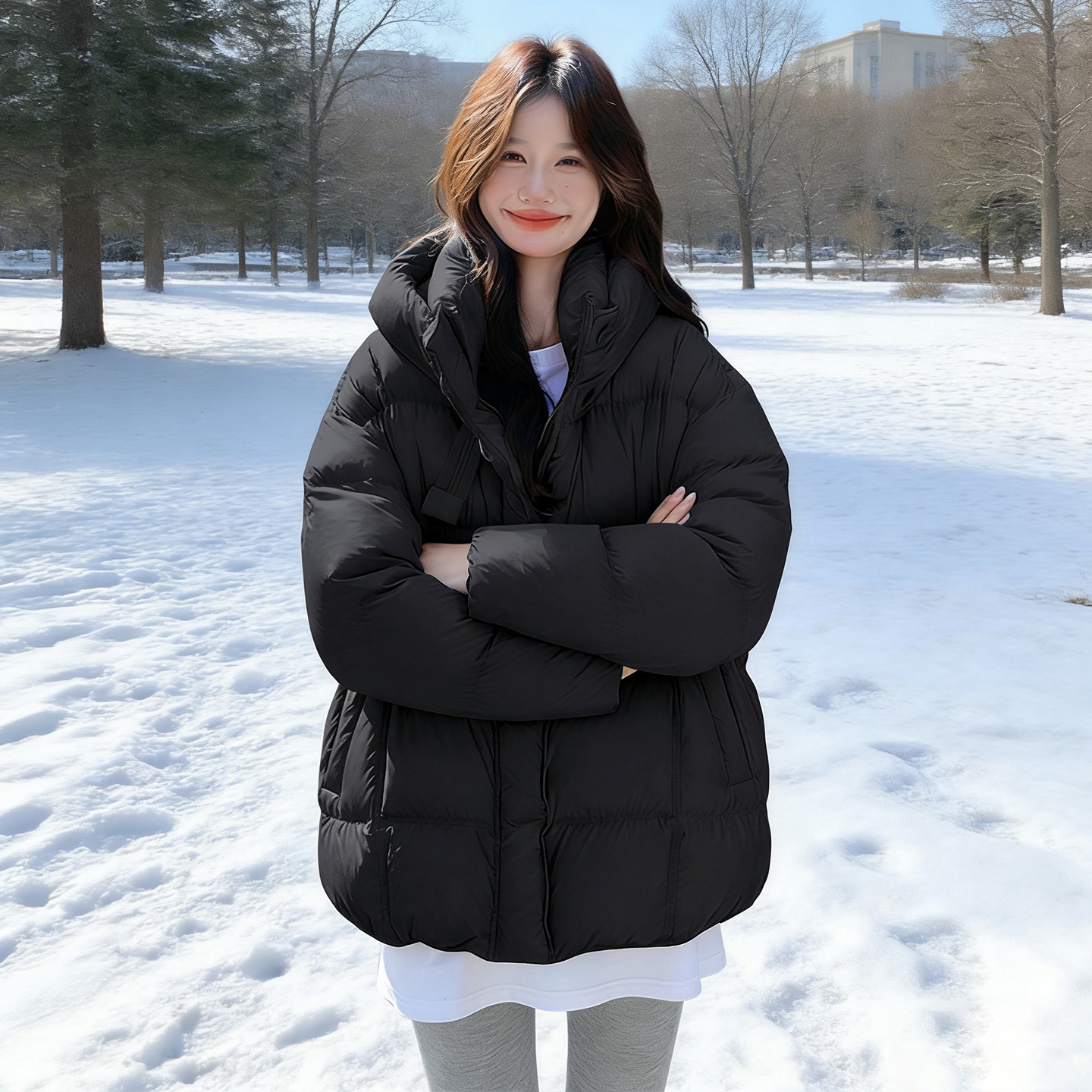 300斤特大码女装高级感连帽羽绒棉服女胖mm宽松加厚保暖黑色外套