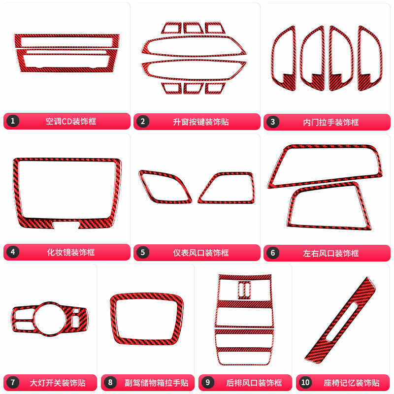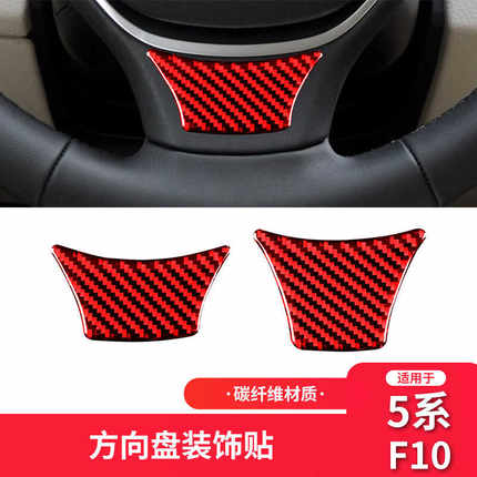 适用于宝马5系改装内饰528 525li F10红色碳纤维方向盘装饰贴