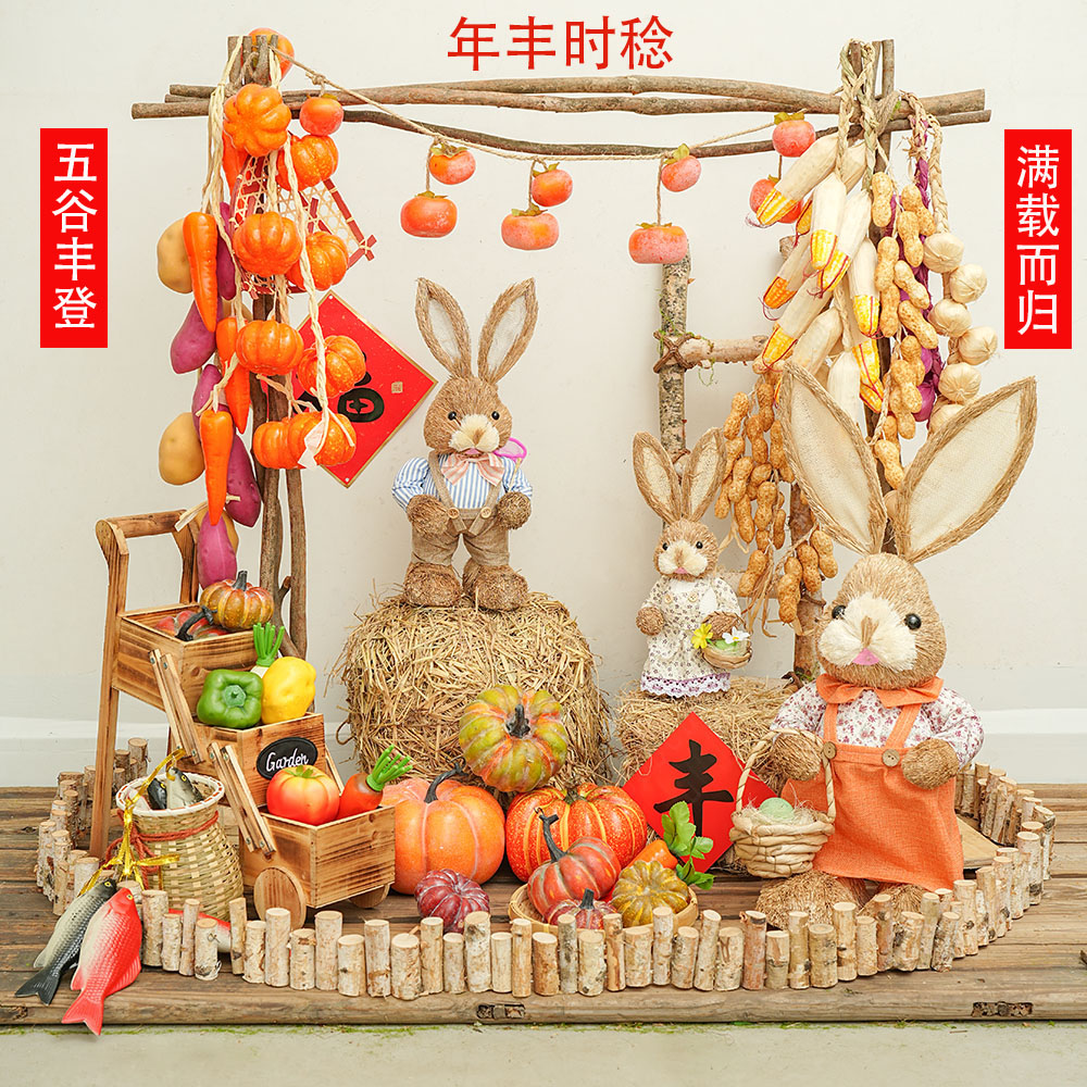 丰收主题造景橱窗摆设仿真玉米柿子南瓜蒜挂饰挂串秋收幼儿园环创