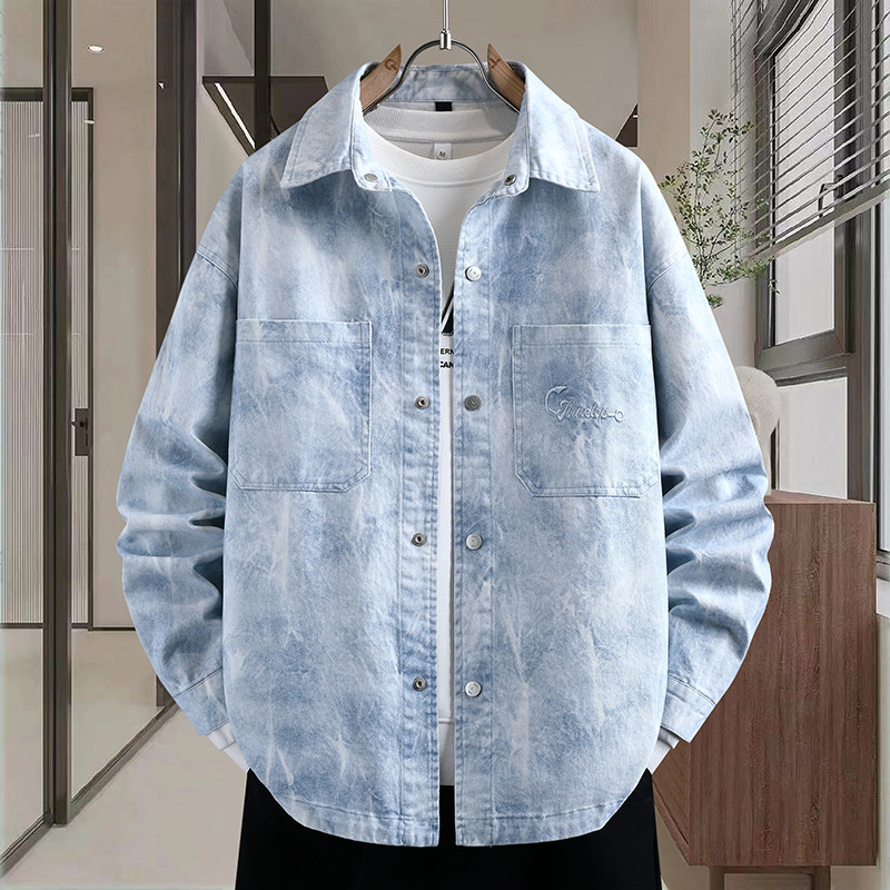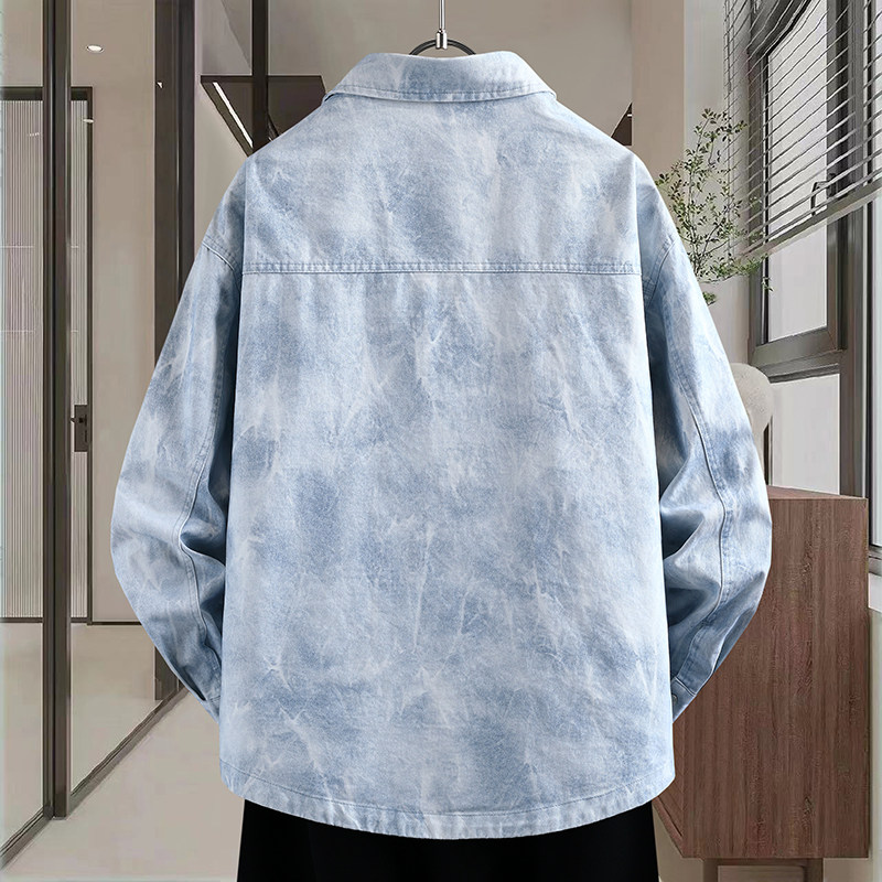 2026春季重磅新款青少年高品质翻领牛仔外套韩系扎染百搭男生夹克