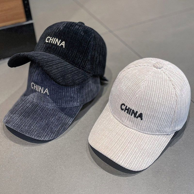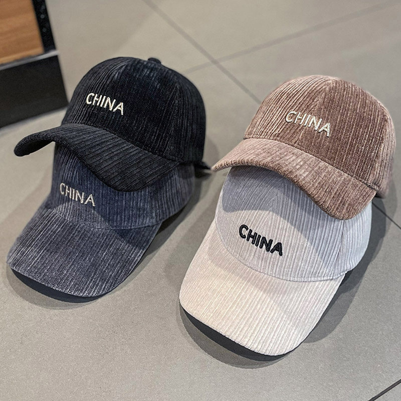 灯芯绒字母刺绣休闲风弯檐棒球帽