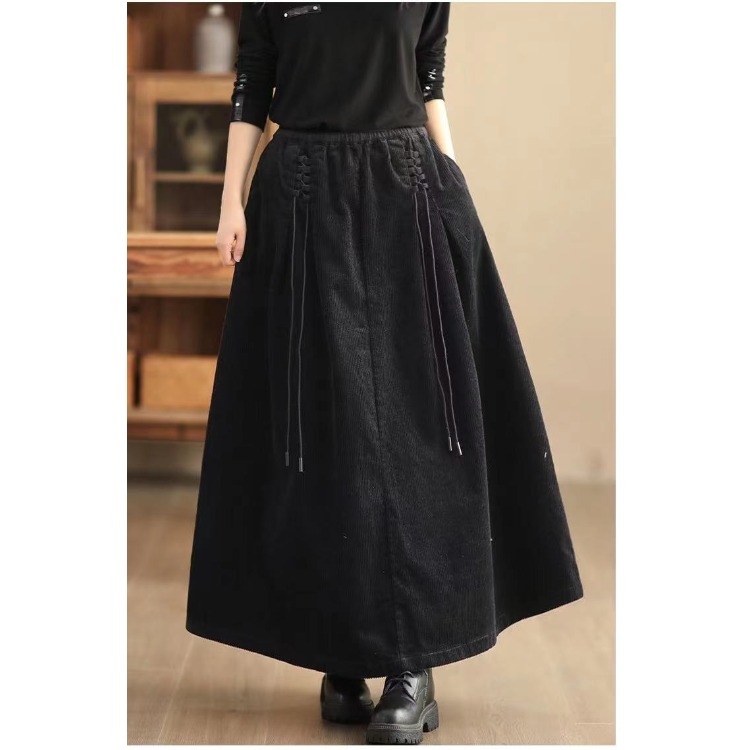 复古灯芯绒半身裙女春秋洋气大码高腰显瘦中长款遮胯大摆A字裙子