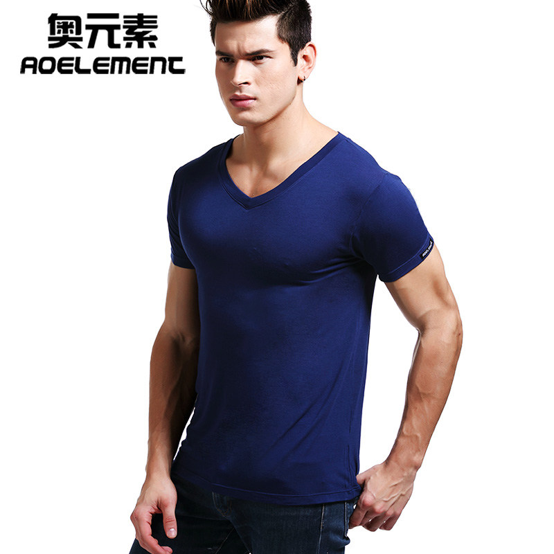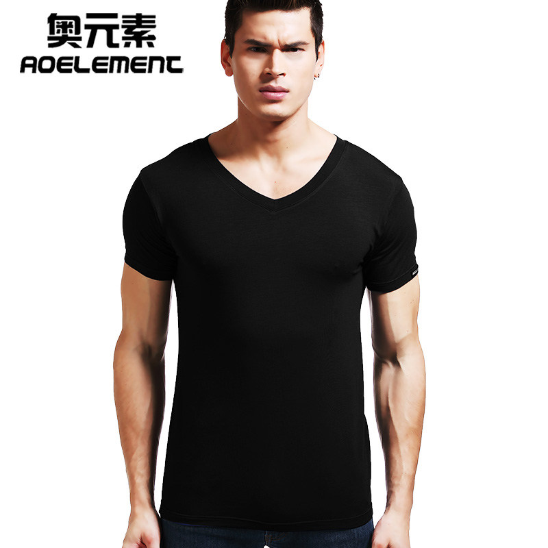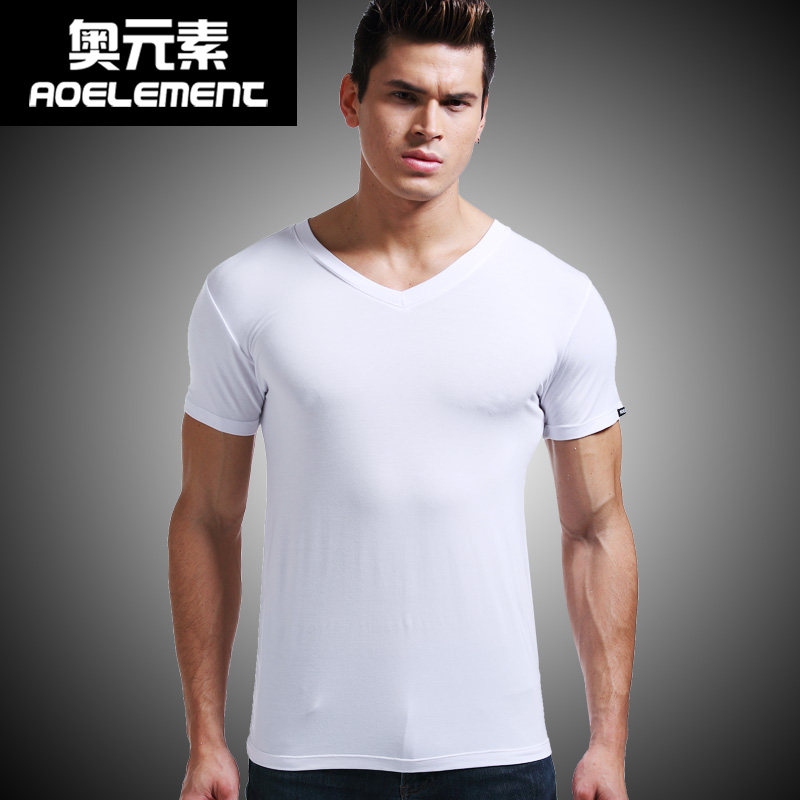 莫代尔夏季圆领紧身男士短袖V领t恤纯色背心体恤修身运动打底汗衫