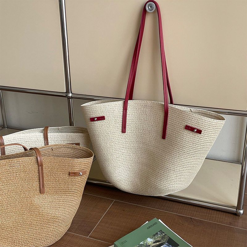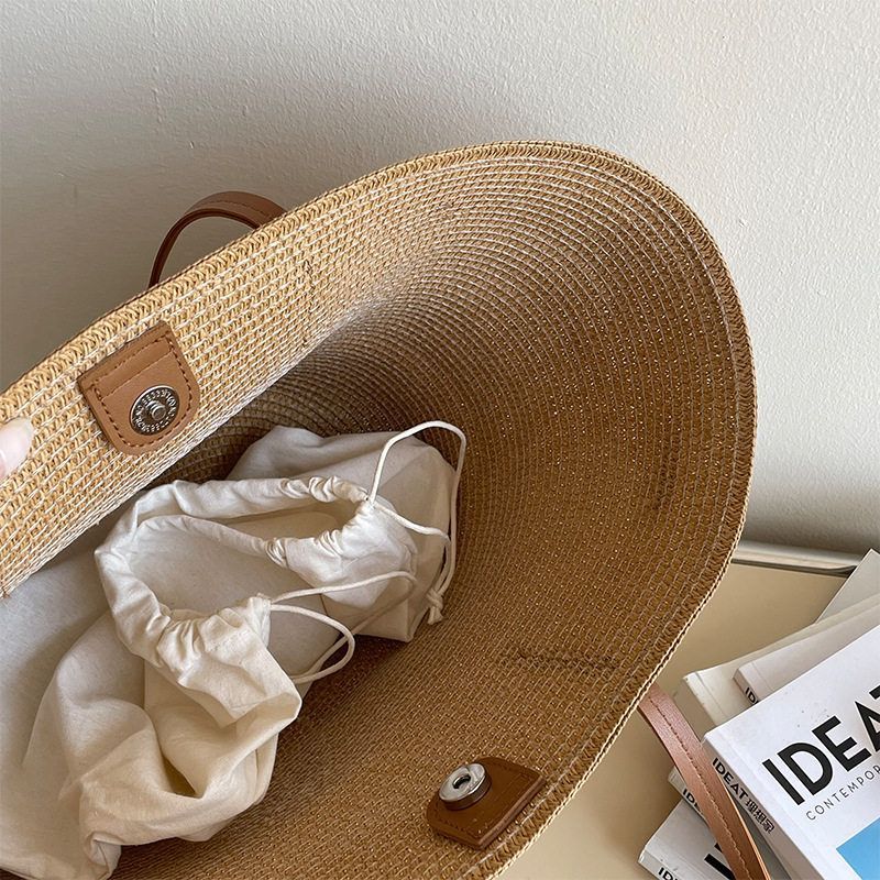 滔川大容量单肩草编包女休闲度假