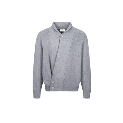 Succinct “道袍”立领斜门襟纽扣针织毛衣开衫可调节下摆V领长袖